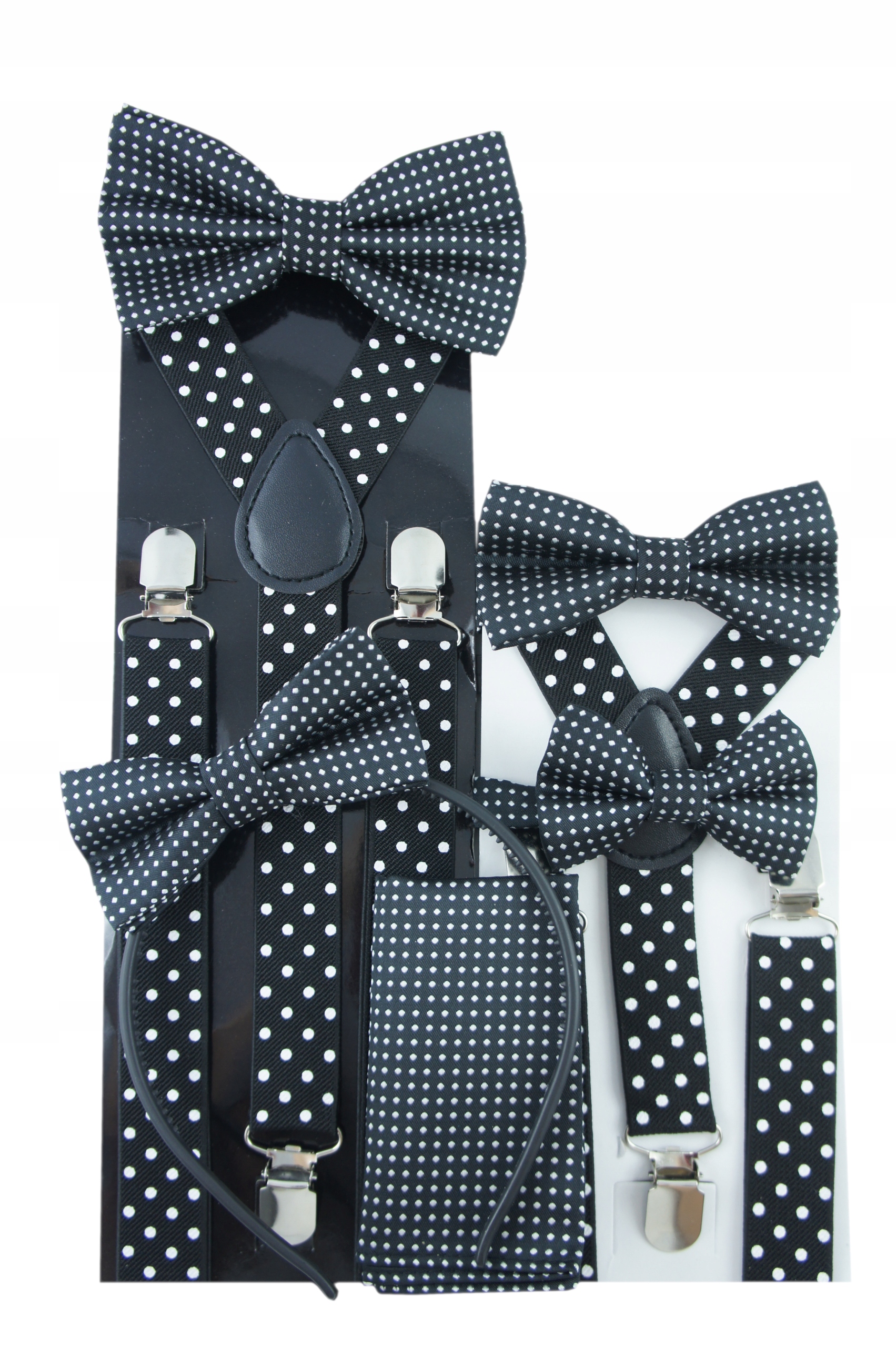 Szelki i muszka chłopięce ok.7-12l w kropki groszki CZARNE W BIAŁE GROCHY