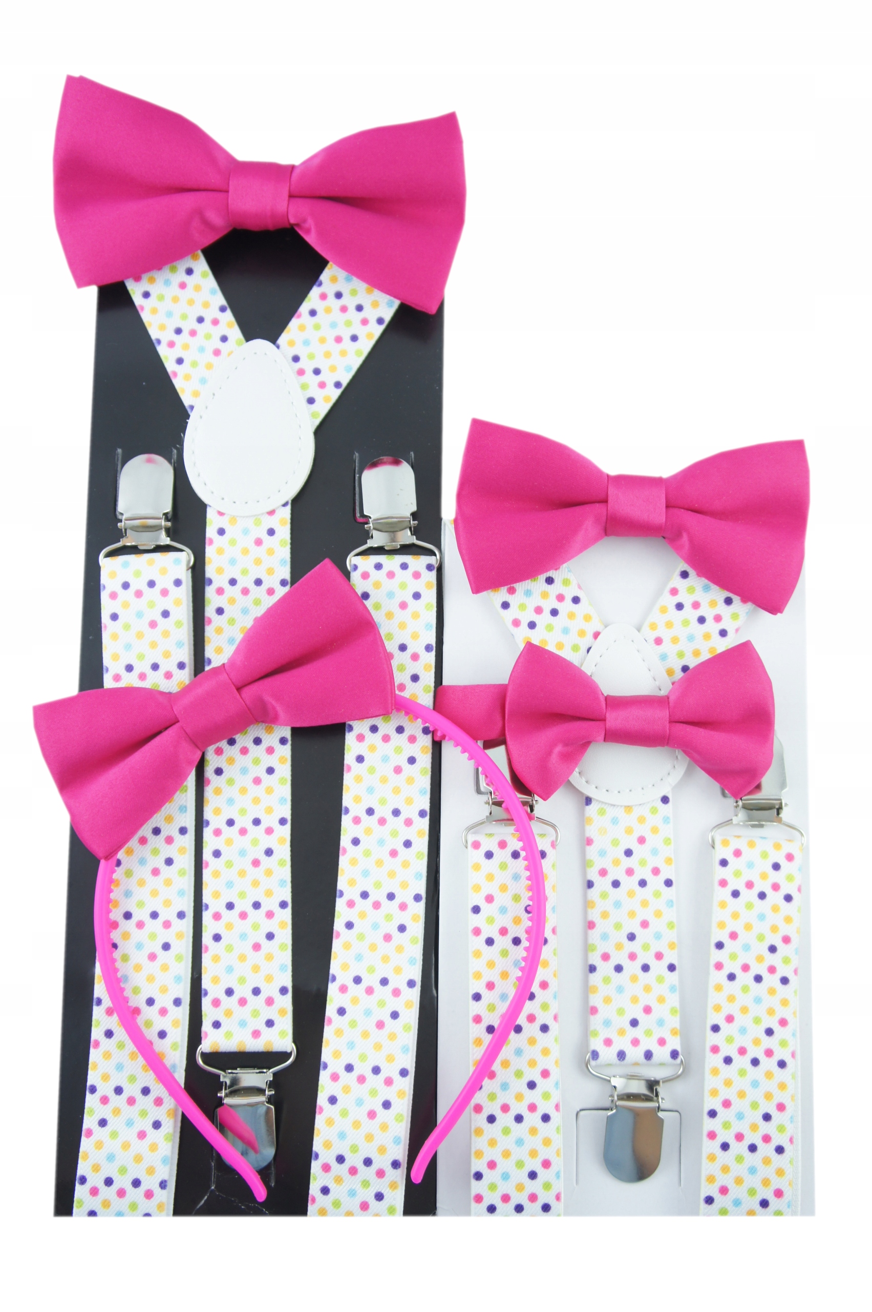 Szelki i muszka na chrzest roczek KOLOROWE KROPKI