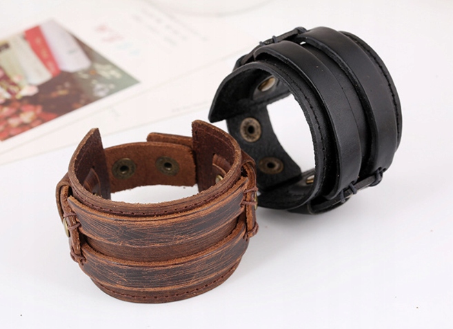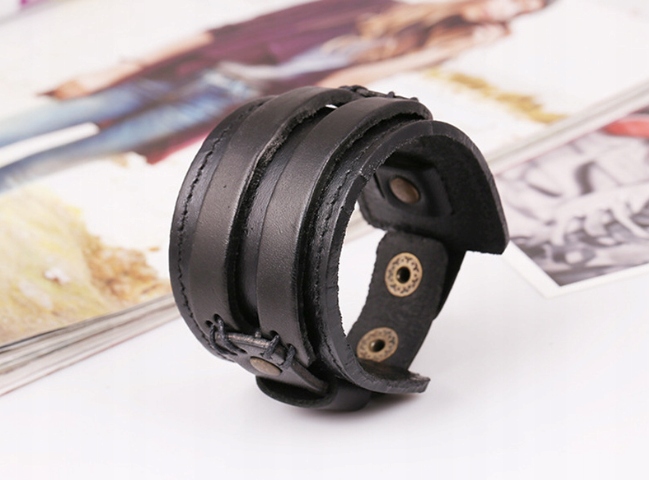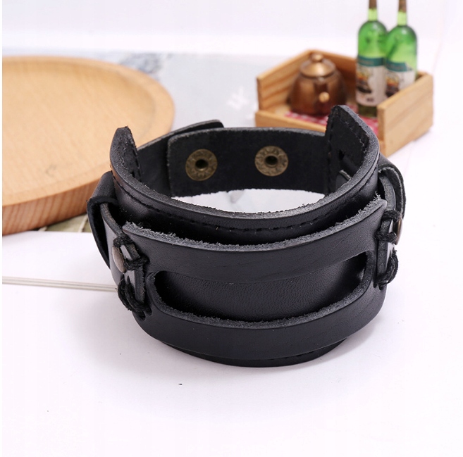 Szeroka skórzana bransoletka w stylu retro czarny