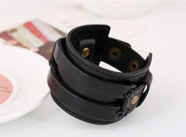 Широкий чорний шкіряний браслет у стилі ретро