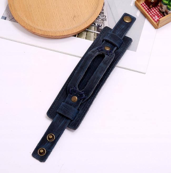 Szeroka skórzana bransoletka w stylu retro niebieski