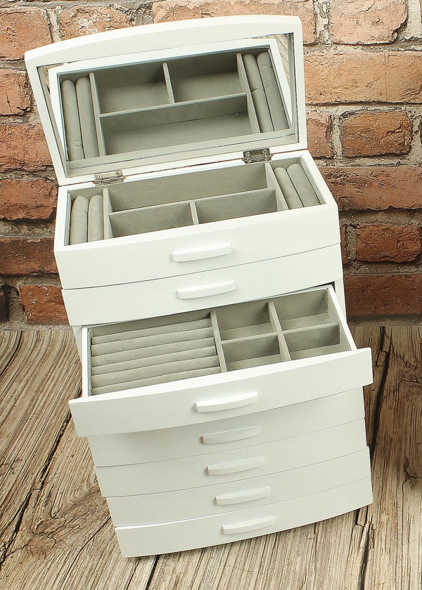 SZKATUŁKA NA BIŻUTERIĘ BIAŁA DUŻA 8-poziomów lustr