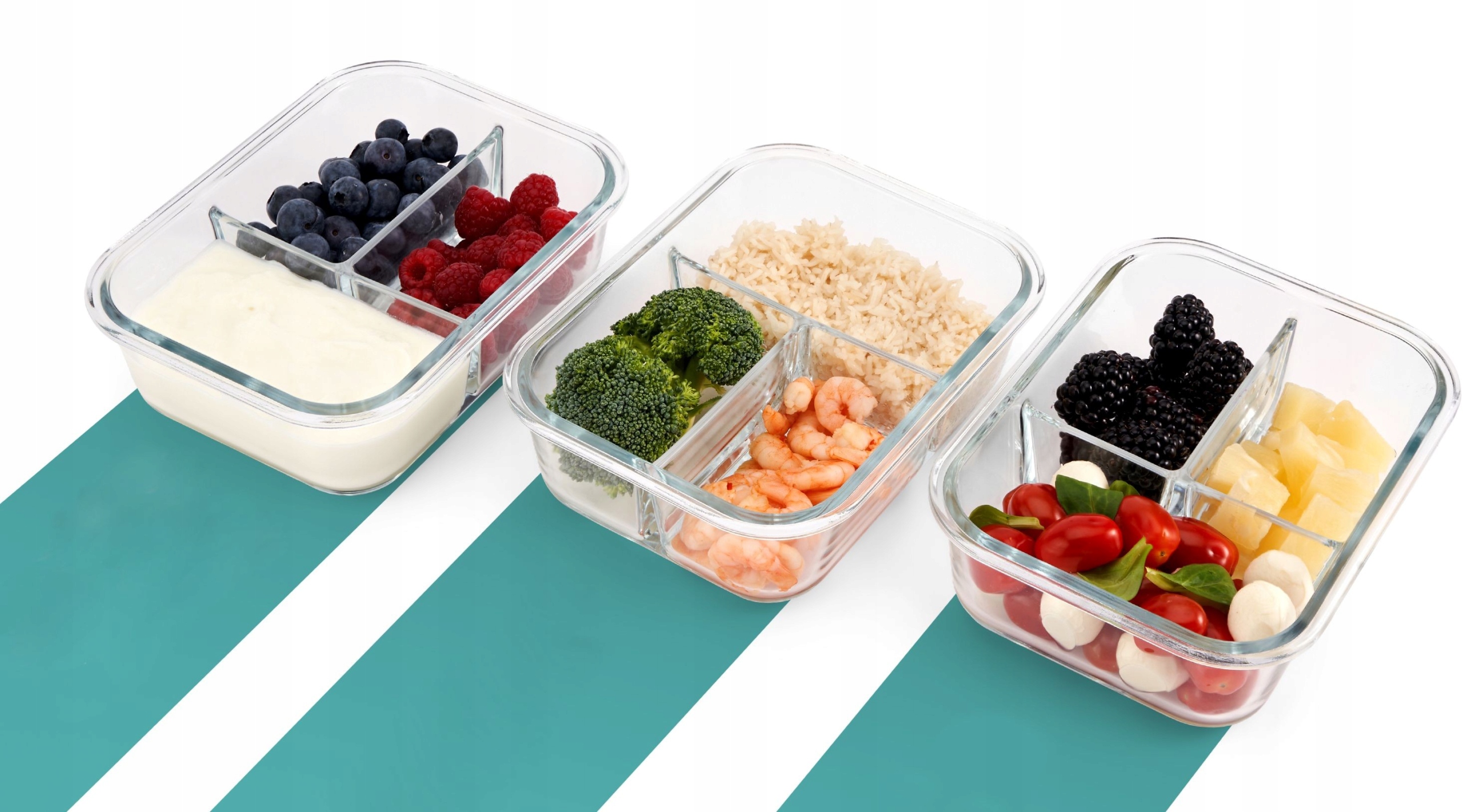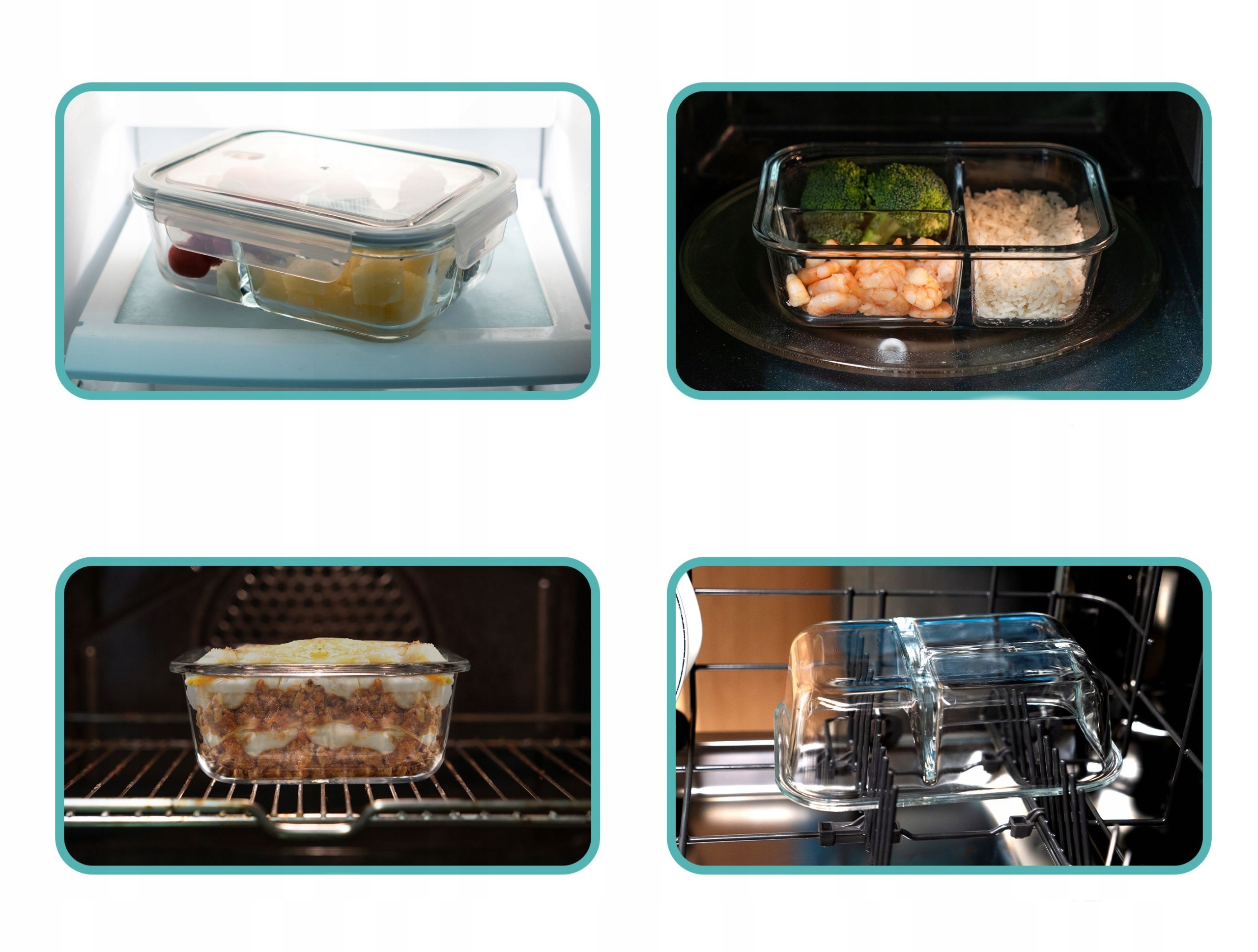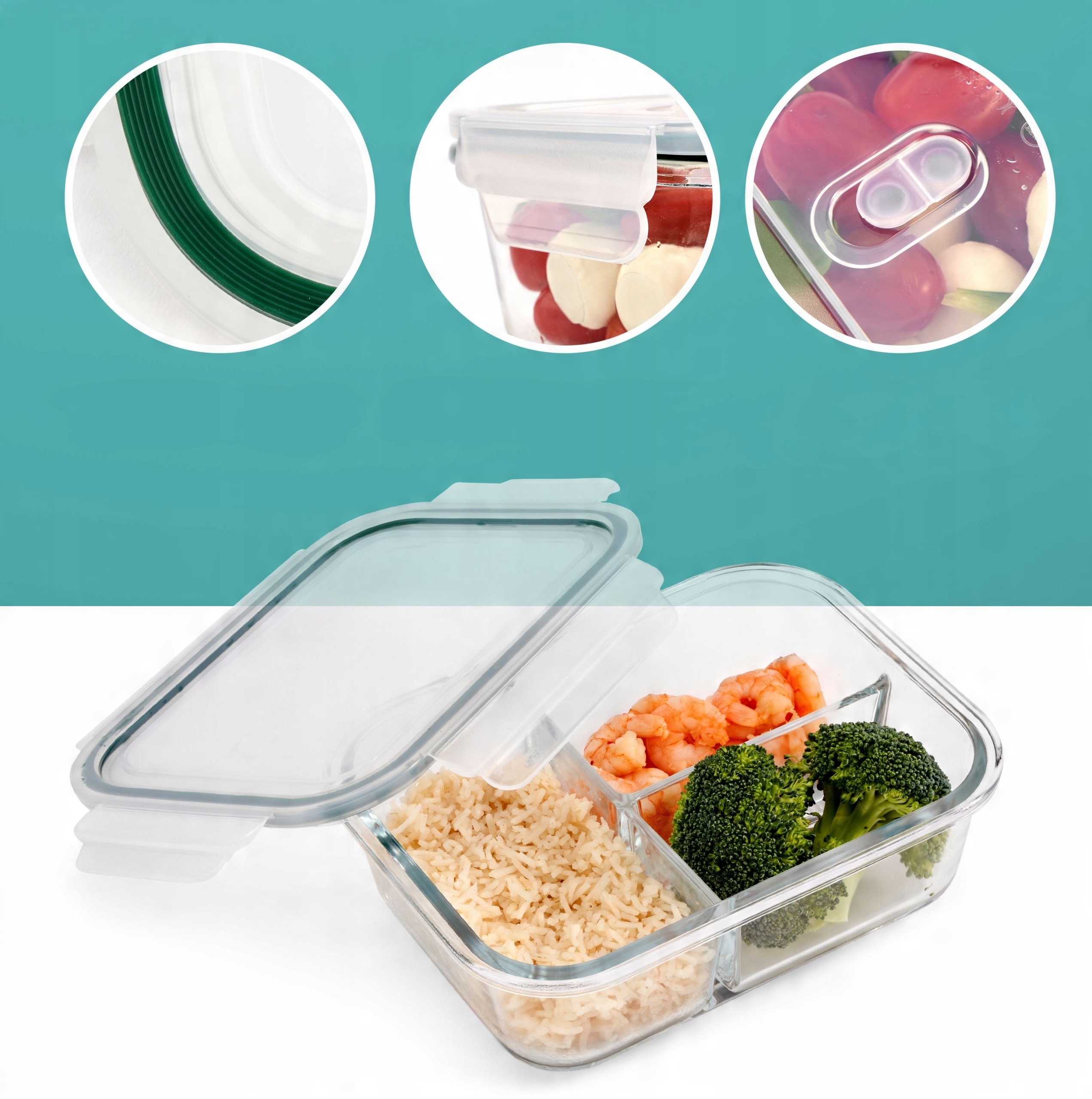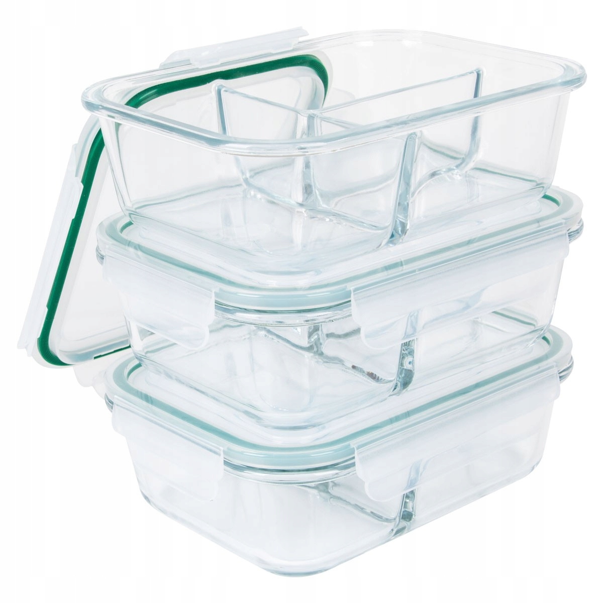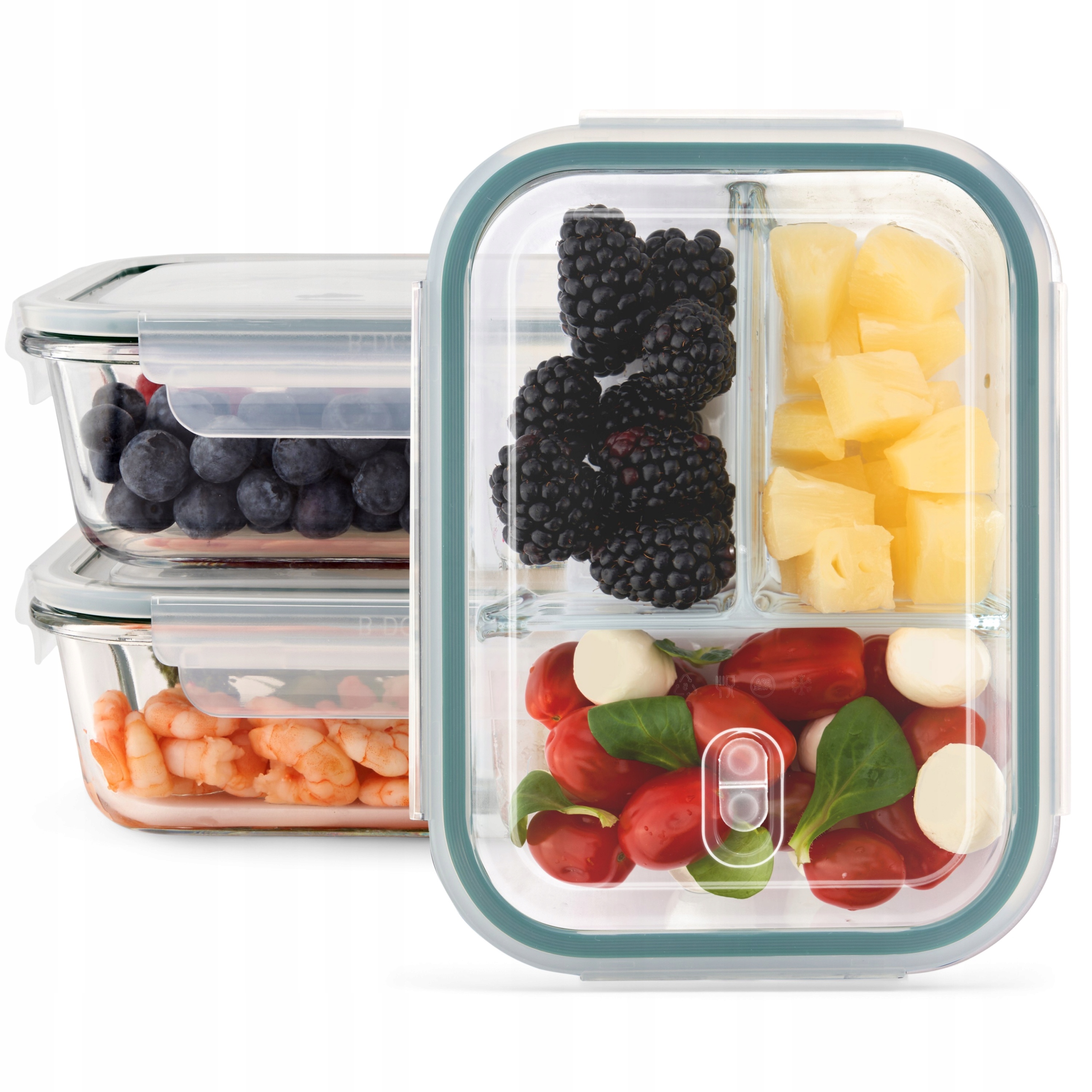 3 контейнера з ємність по 1000 мл кожна, обладнана відділеннями, призначена для зберігання продуктів з герметичним закриттям - ідеально підходить для зберігання продуктів, як інгредієнтів, так і цілого посуду