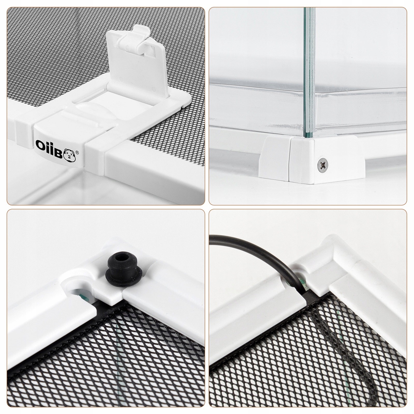 OiiBO Terrariumпризначений для розведення тварин з різними екологічними вимогами. Це дозволяє легко встановити та спостерігати за вашим вихованцем у повному огляді 360°. Це істотно впливає на контакт з твариною. Скляні стінки тераріуму з усіх боків і сітка на верхній кришці забезпечують широкий доступ світла та UVB-випромінювання.