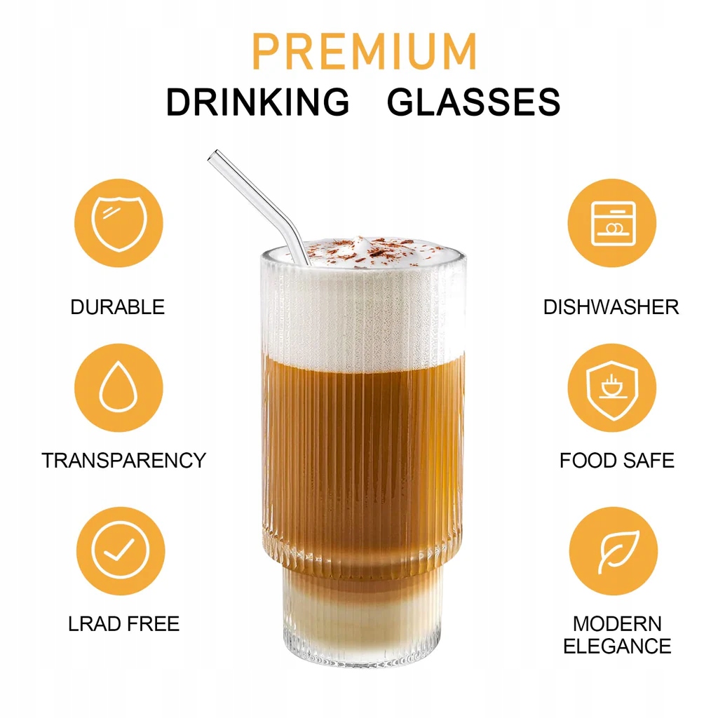 SZKLANKI DO DRINKÓW SOKU NAPOJÓW WHISKY 330 ML 4 sztuk SŁOMKI