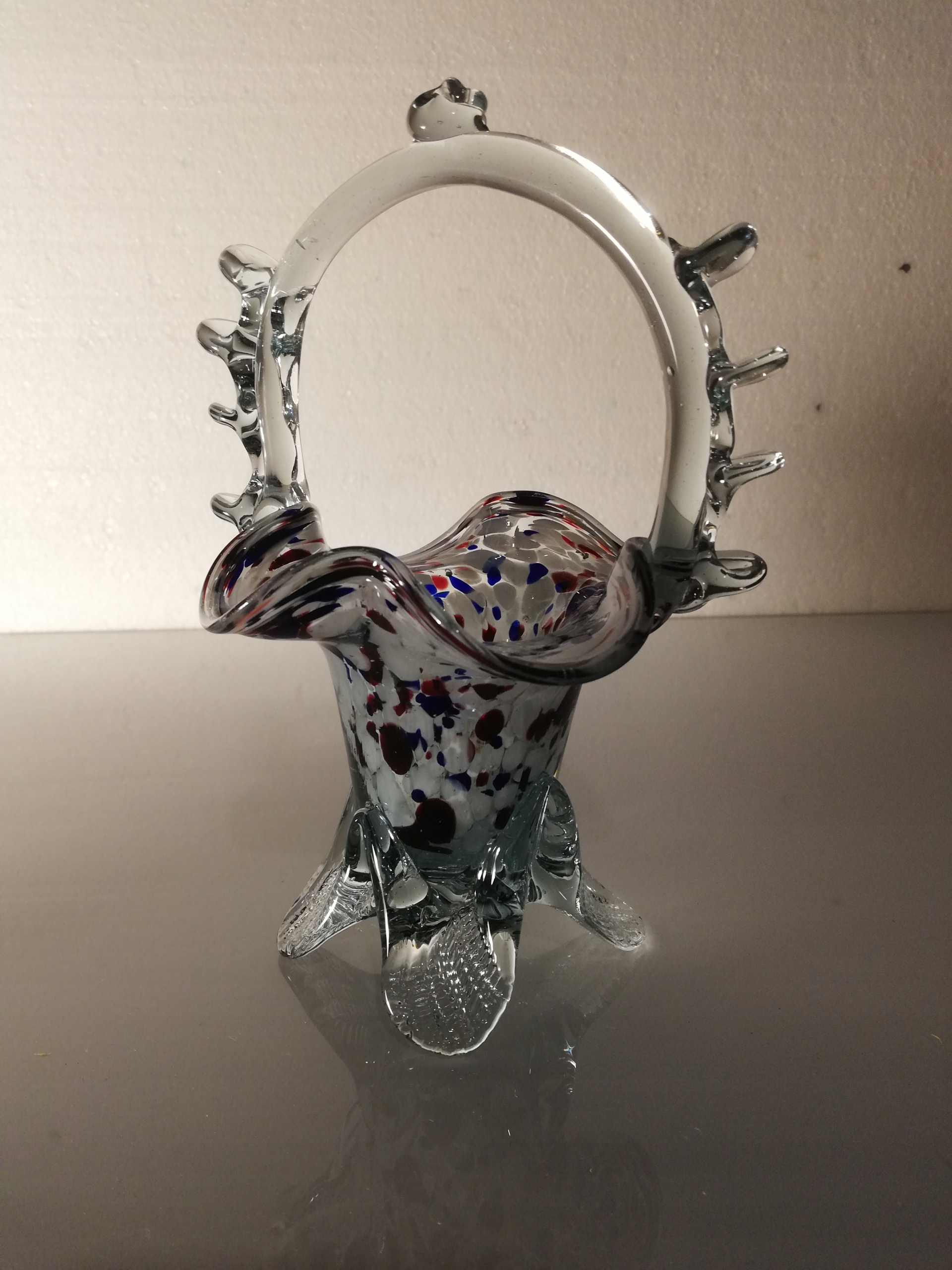 SZKLANY KOLOROWY KOSZYK z PRL-u 19 cm