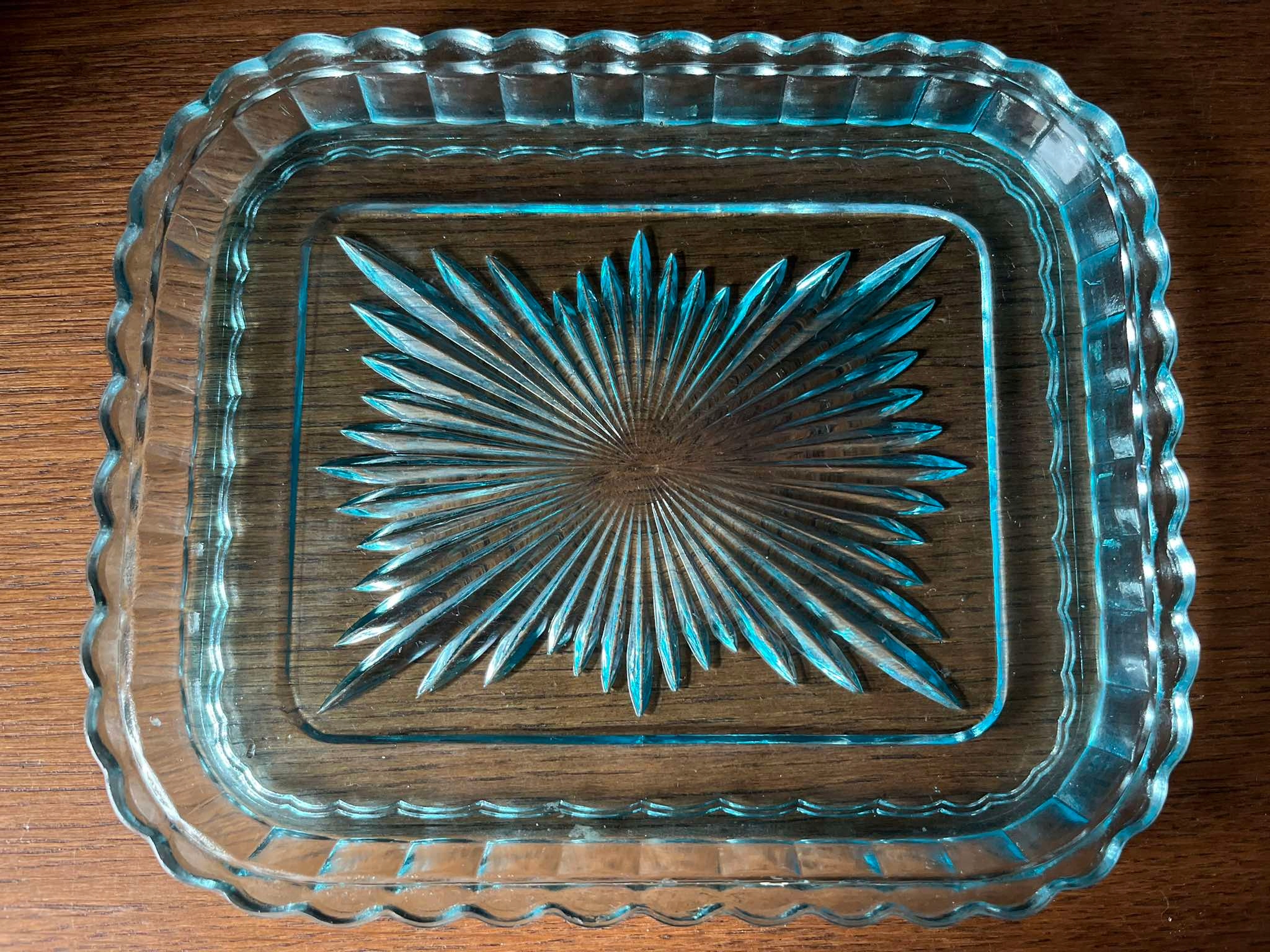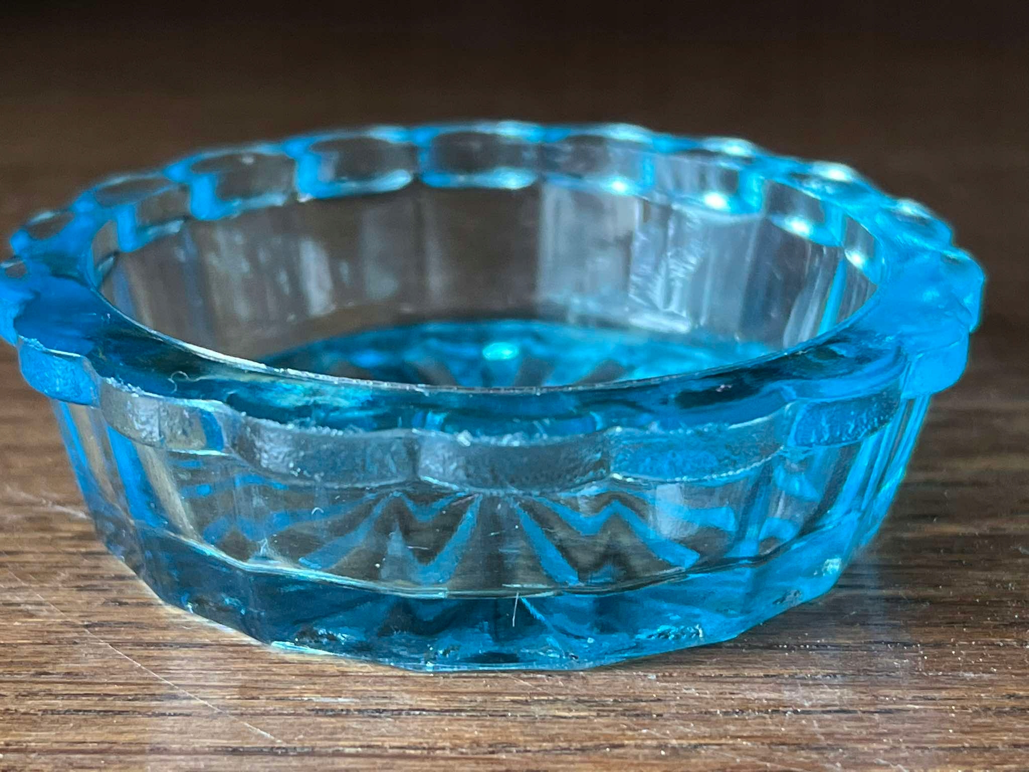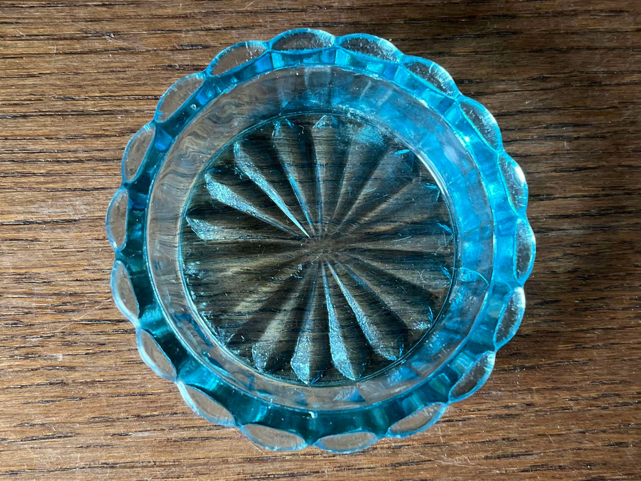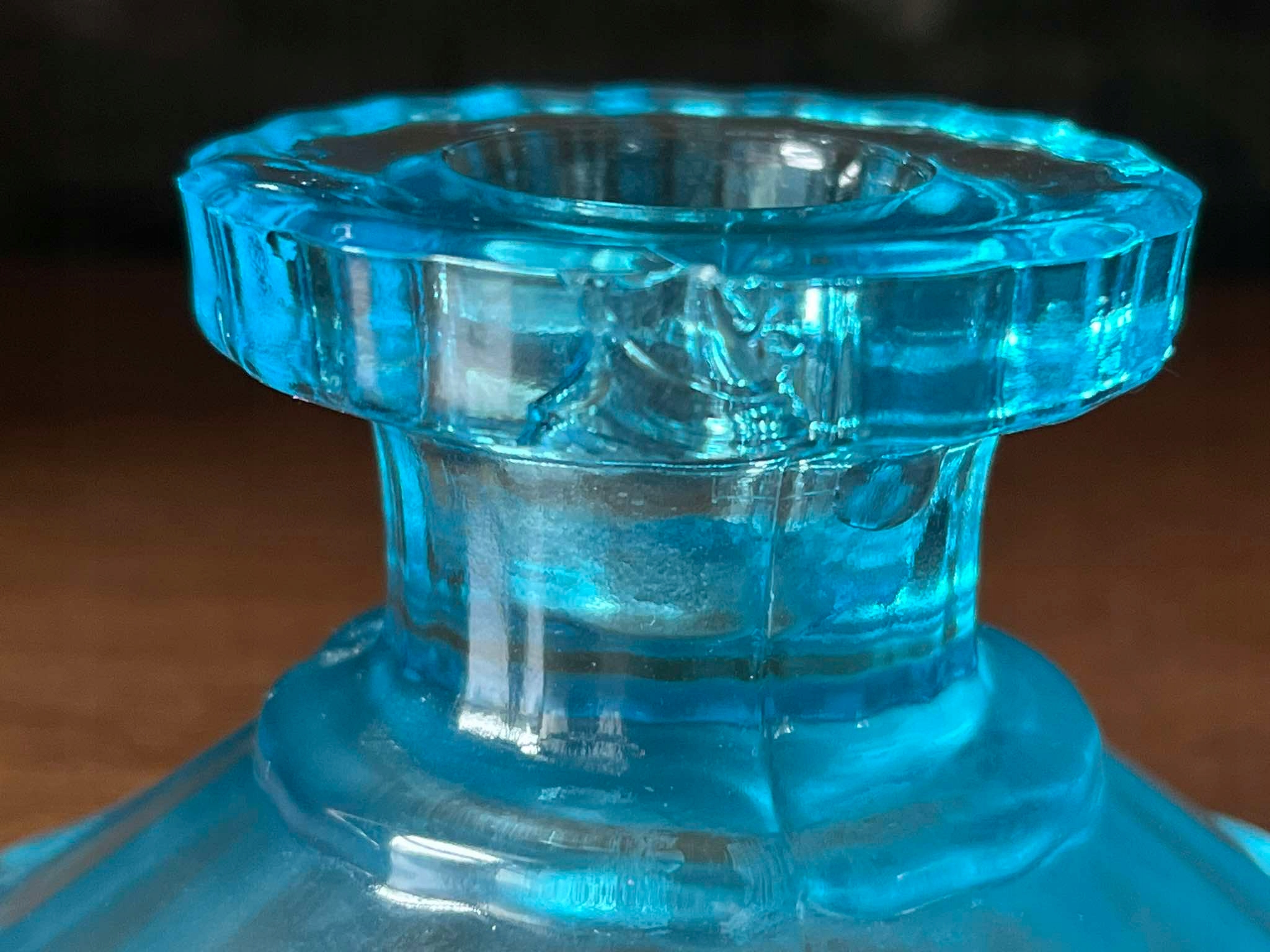 Szklany zestaw na toaletkę stół błękitne szkło vintage