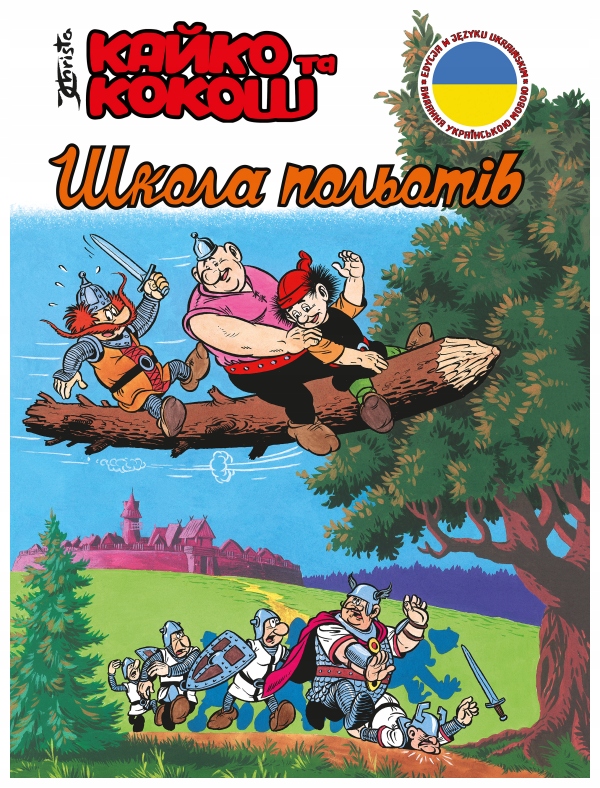 Kajko and Kokosz - Авіаційна школа перекладена українською. Серіал розповідає про двох воїнів – хороброго й розважливого Каєка та ненажерливого й егоїстичного Кокоша, які захищають Мірмілув від нападів мерзенних бандитів на чолі з Гегемоном і переживають безліч кумедних пригод. Комікс був створений у 1970-1980-х роках і був однією з вітрин молодіжного журналу Świat Młodych. У 2003 році видавництво «Egmont Polska» відновило серію, і завдяки цьому перевиданню всі частини коміксу вперше вийшли кольоровими. Ця версія коміксу українською мовою стане справжньою насолодою для колекціонерів та любителів пригод Каєка та Кокоша та творчості Крісті. Це також дозволить читачам у всьому світі познайомитися з найпопулярнішими польськими героями коміксів. Поблизу Мірмілова жорстокі розбійники, негідні лицарів, збудували власну твердиню, лідера яких, Кривавого Гегемона, найбільше розлютив, почувши, що він не має почуття гумору. Одного разу він вирішив захопити замок каштеляна Мірміла та розпочати наступ із захоплення Клуб-інну, щоб швидко зламати дух захисників. Завдяки Каєку та Кокошу атаку відбито, тож Гегемон придумує спосіб позбутися обох воїнів із міста. Він переконує кастеляна здійснити свою найбільшу мрію і разом зі своєю охороною відправитися на Лису Гору, що знаходиться в країні Омса, де відьми навчать його літати.