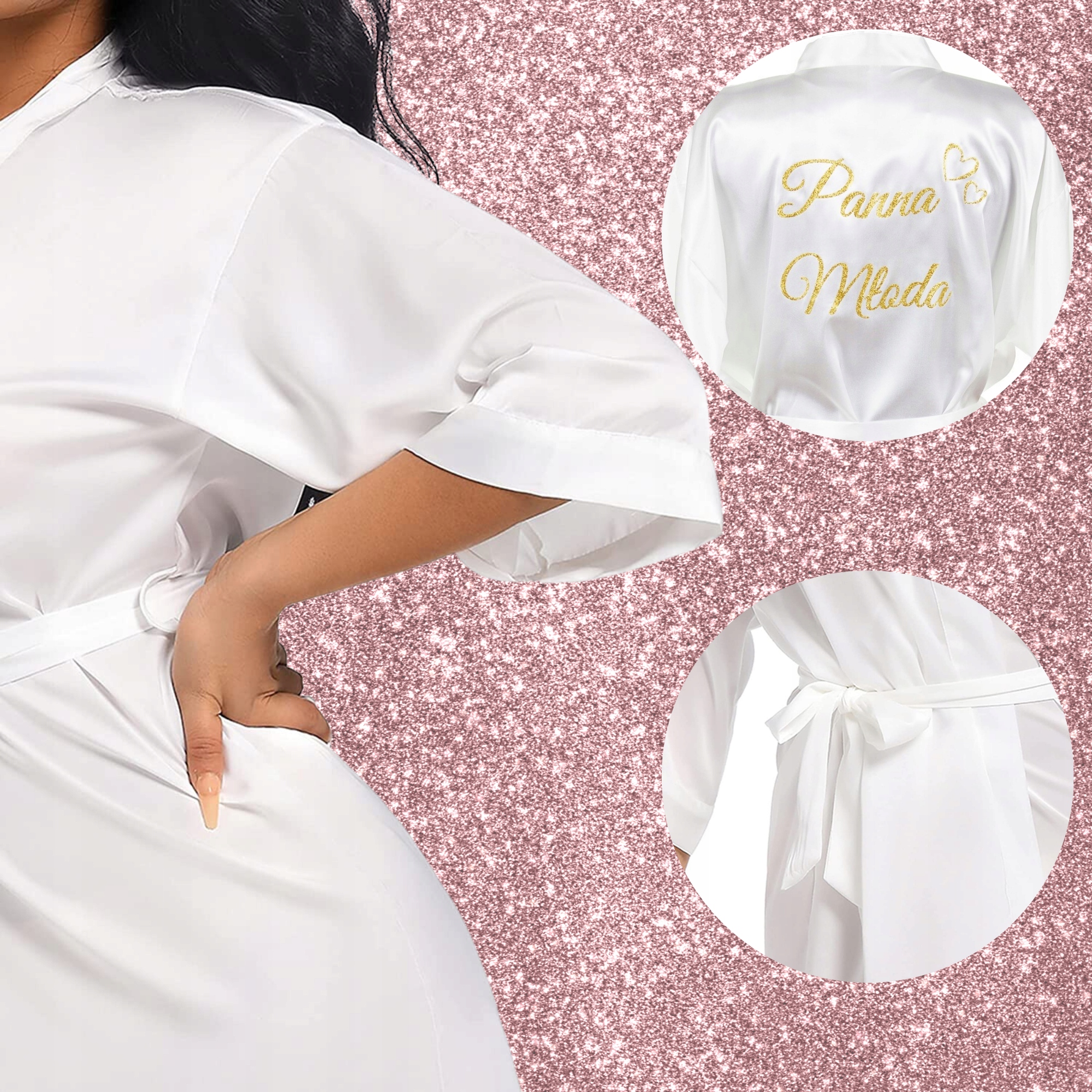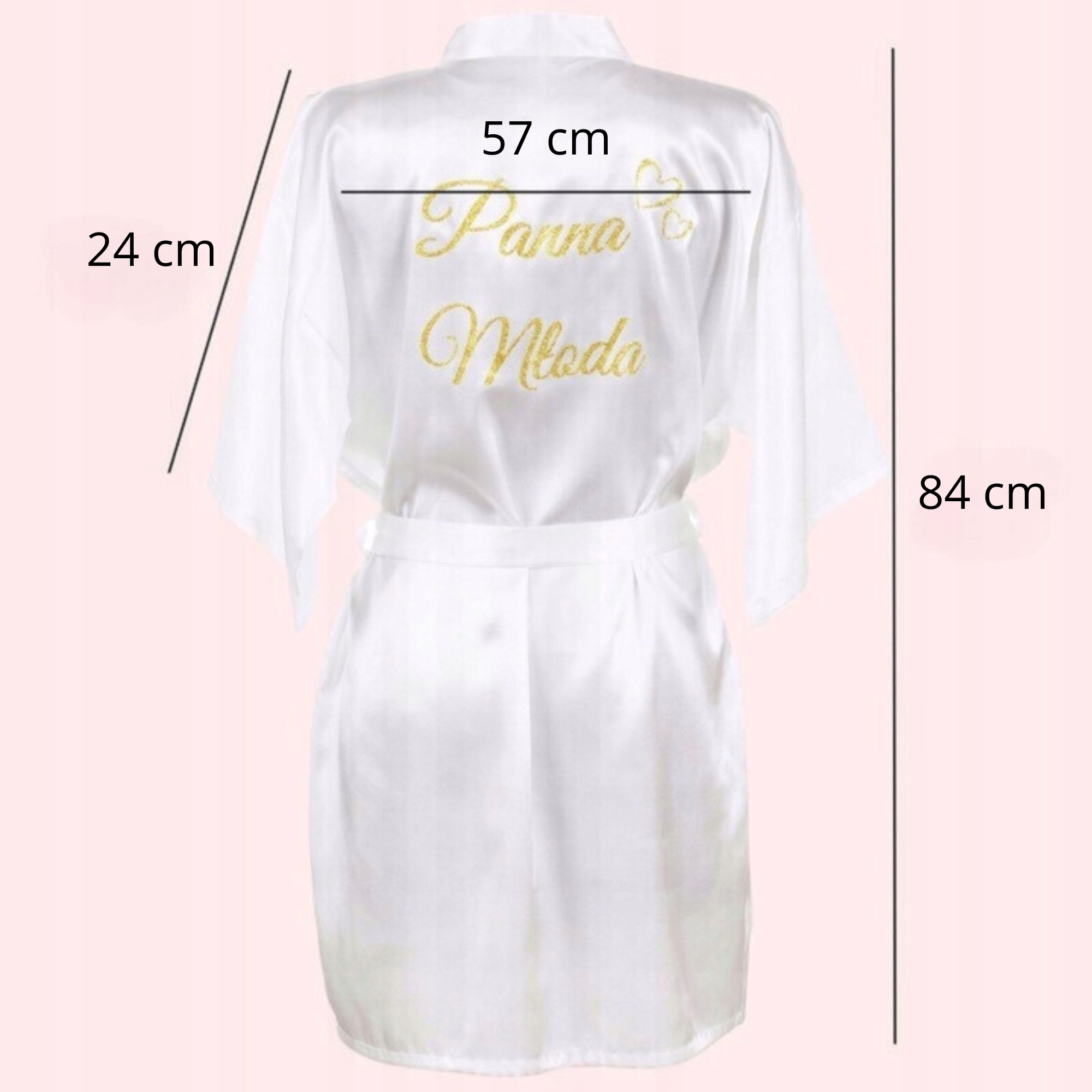 SZLAFROK ŚLUBNY DAMSKI SATYNOWY PANNA MŁODA PANIEŃSKI NAPIS ROZMIAR M