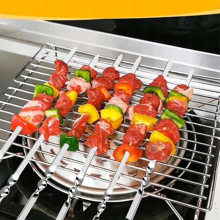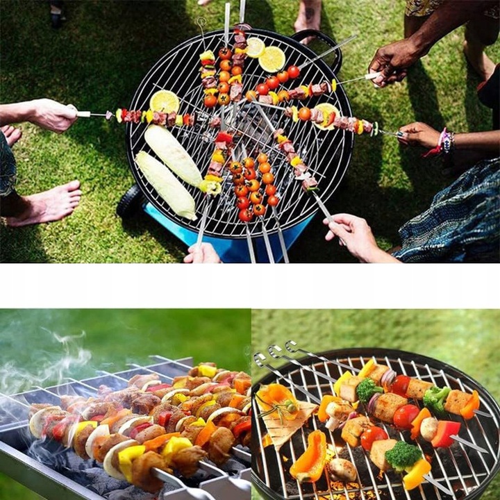 ✨ Наші шампури з нержавіючої сталі Це чудовий вибір для кожного любителя барбекю! Виготовлені з високоякісної нержавіючої сталі, вони надзвичайно міцні, стійкі до іржі та багаторазового використання. Завдяки цьому ви можете насолоджуватися ідеально запеченим м'ясом, овочами чи фруктами, не боячись їх довговічності.