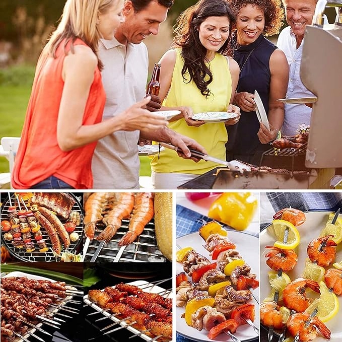 ✅Його легко тримати та ефективно запобігає опікам рук. Порівняно з круглими решітками для шашлику, плоскі вертели з нержавіючої сталі більш стійкі, їх можна легко повертати та рівномірно прожарювати їжу. У порівнянні з дерев’яними вертелами, ці вертела з нержавіючої сталі зелені, багаторазові та не деформуються.