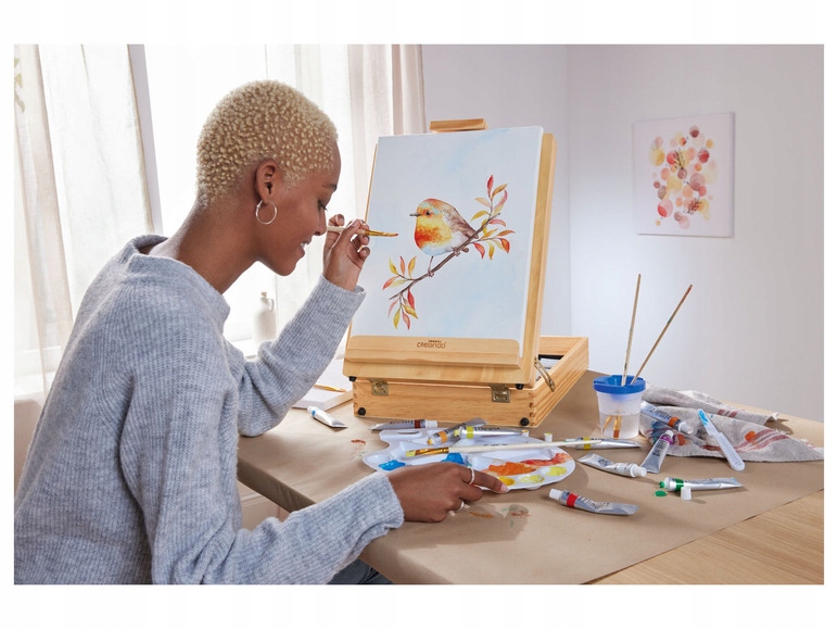 Sztaluga stołowa z walizką transportową 2 płótna bogate wyposażenie 52 el