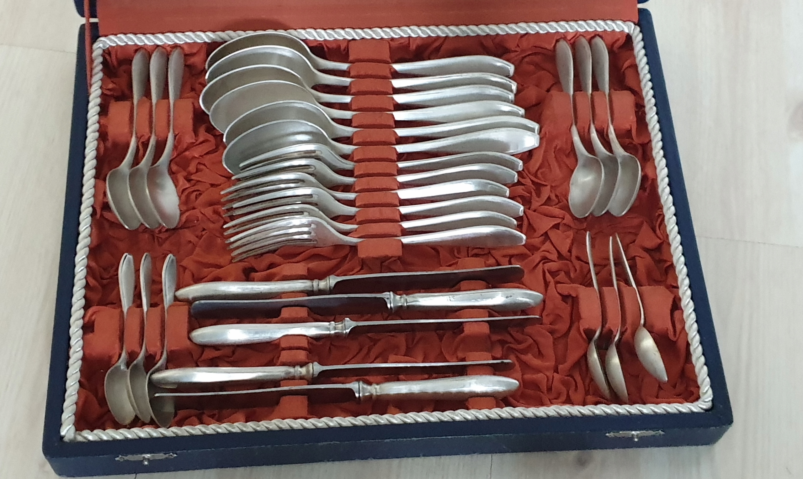 СТОЛОВІ ПРИБОРИ НА 6 ОСІБ З ЮВЕЛІРНИМ ПОКРИТТЯМ - В ОРИГІНАЛЬНІЙ КАСЕТІ ДЛЯ ПРИКРАС, ВКЛЮЧАЮЧИ: 6 ЛОЖОК, 5 НОЖІВ, 6 ВИЛОК ТА 2X6 ЛОЖОК. СТАН НІКОЛИ НЕ ВИКОРИСТОВУВАВСЯ, МОЖНА ОЧИЩАТИСЯ ЗА ОБОВ'ЯЗКАМИ ПОКУПЦІВ. РЕКОМЕНДУЮ