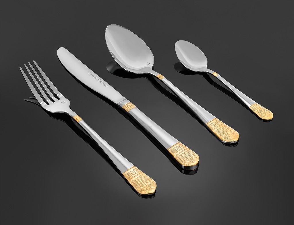 SZTUĆCE ZŁOTE W PUDEŁKU STYL GRECKI 24 EL SERWIS ZESTAW OBIADOWY NA 6 OSÓB