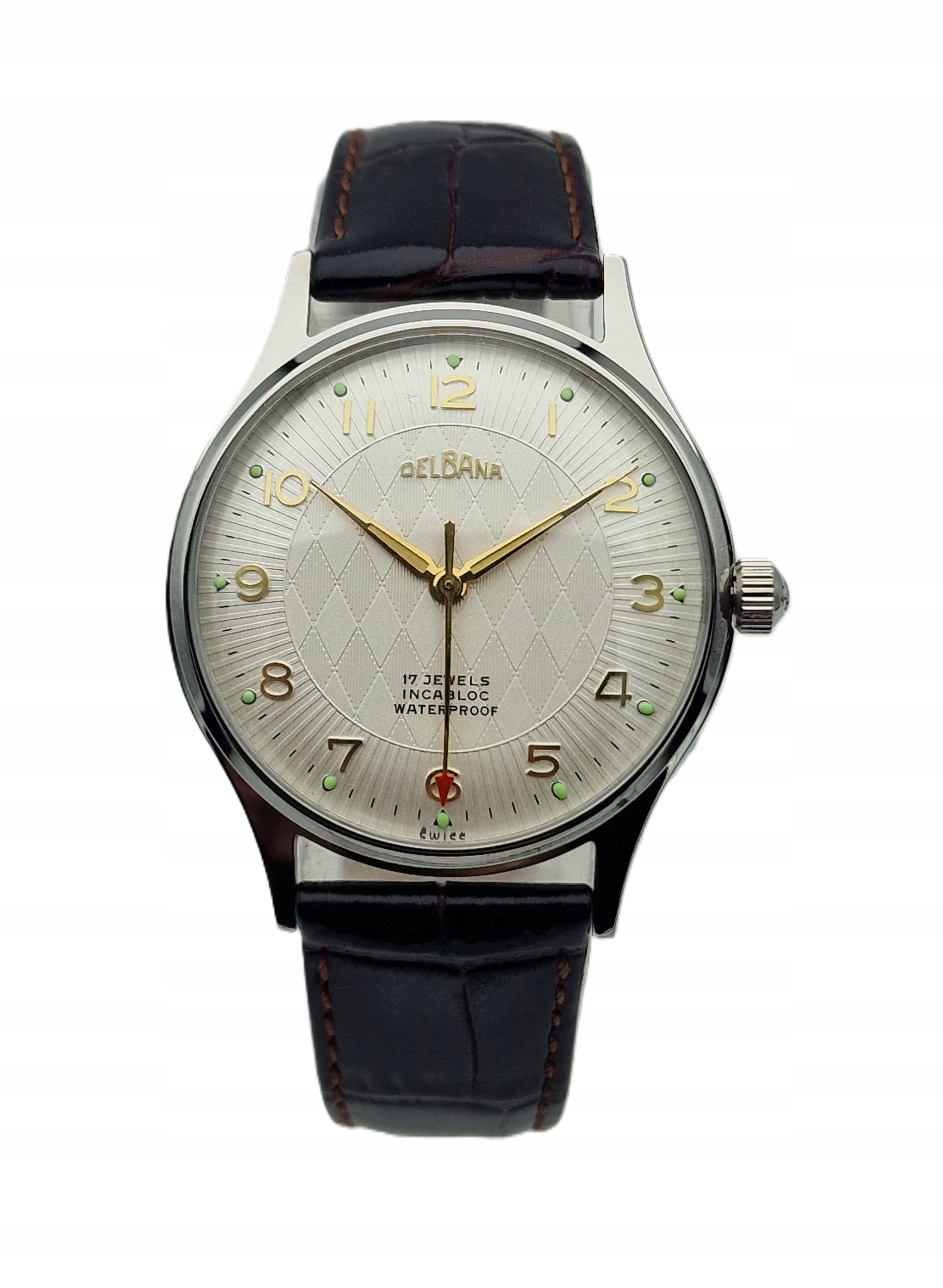 SZWAJCARSKI MĘSKI DUŻY ZEGAREK DELBANA 17 JEWELS Z LAT 50-TYCH - RARYTAS