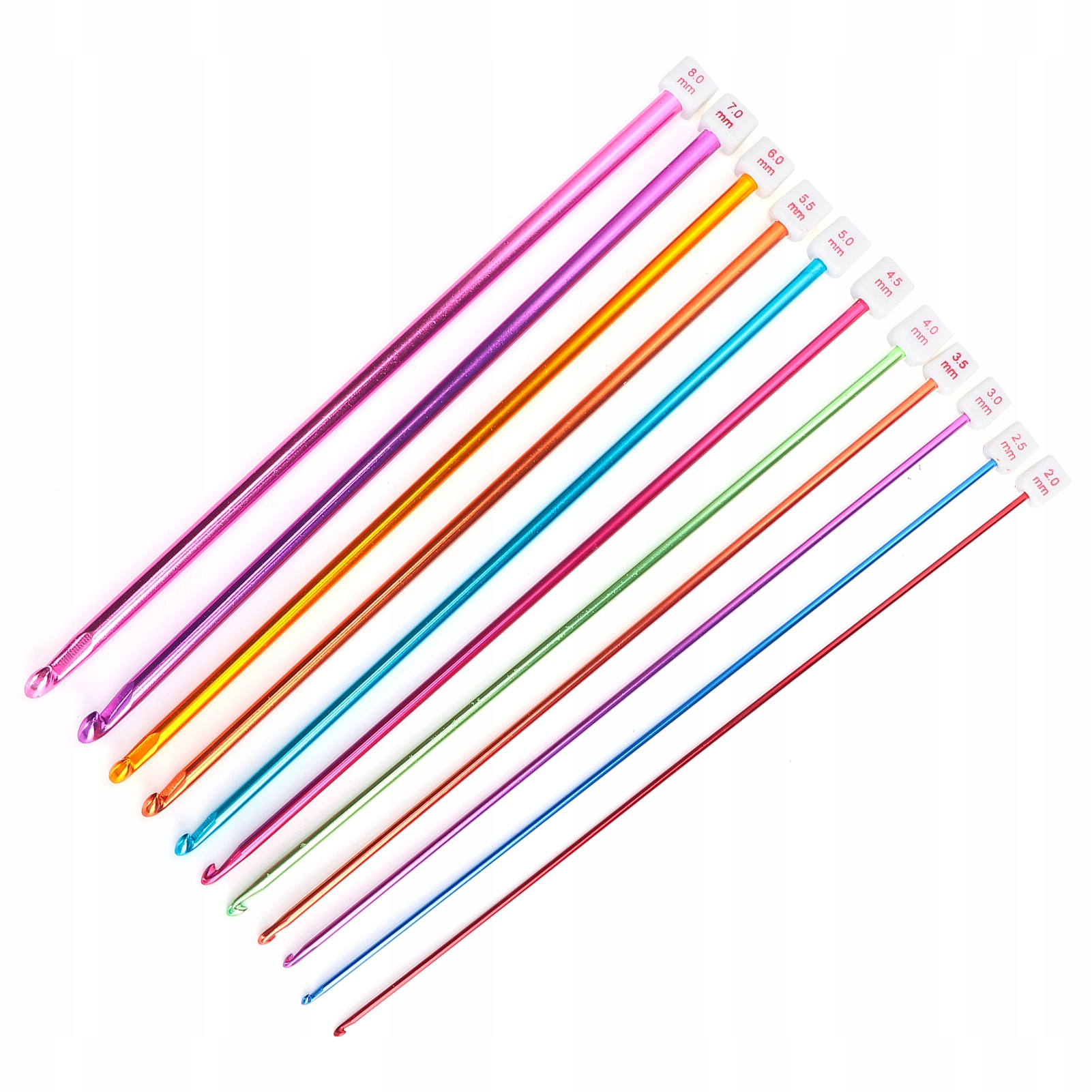 Szydełka aluminiowe 11 sztuk wielokolorowych do robótek włóczkowych
