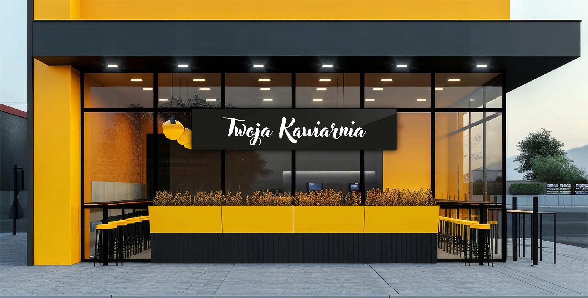 Szyld reklamowy zewnętrzny czarny Tablica reklamowa DIBOND 3mm 200x50 cm