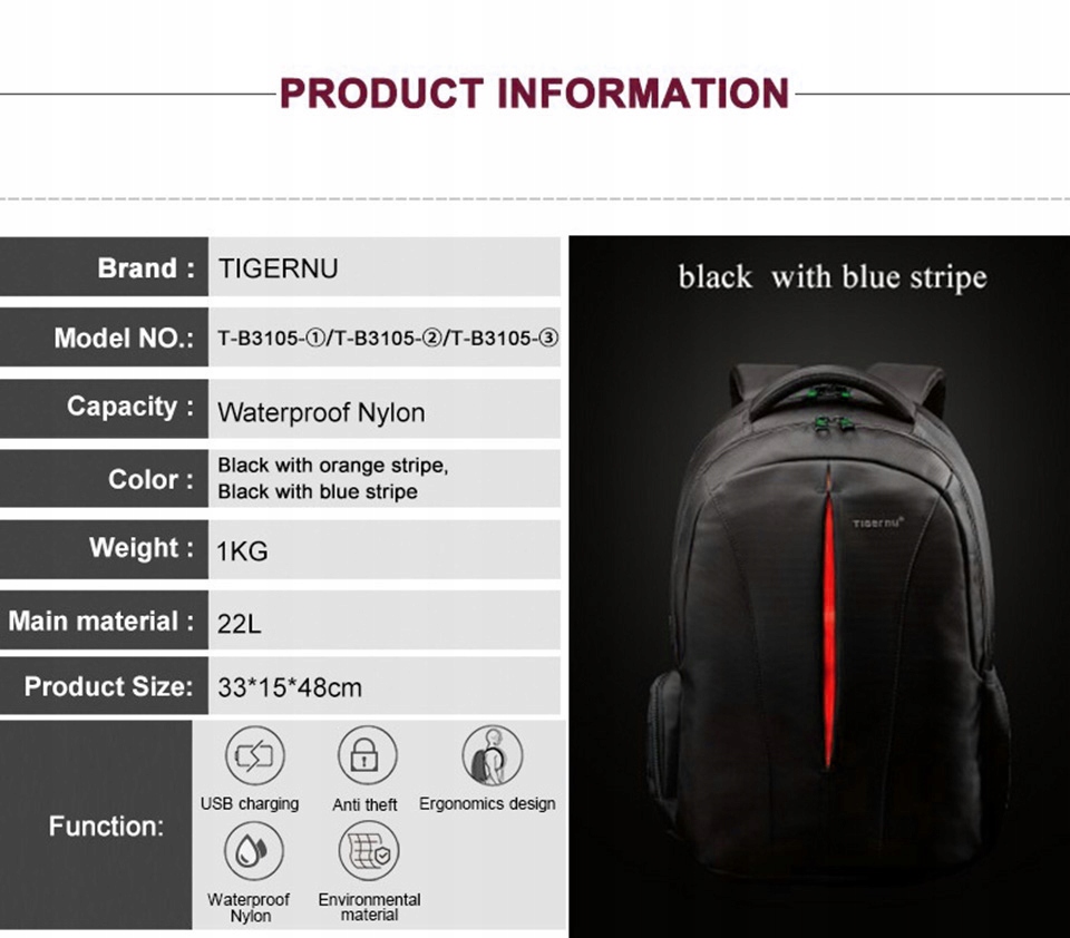 T-B3105U 15.6 "Рюкзак проти крадіжок
