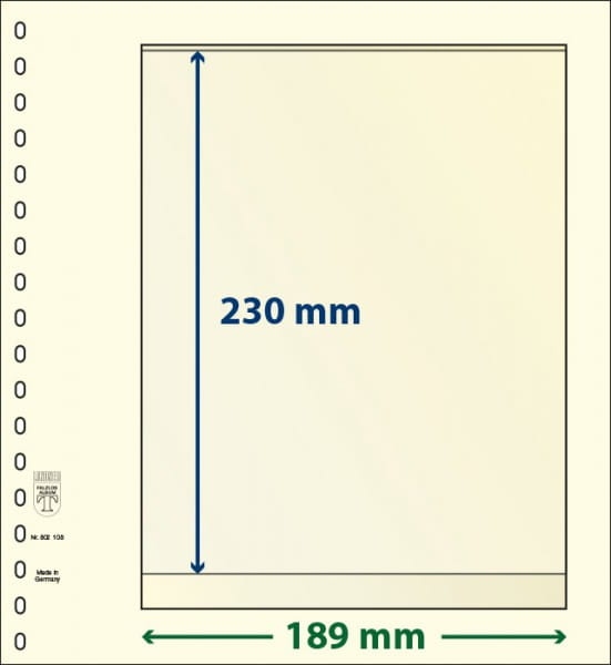 Представляємо Вам 1 кишенькову картку для зберігання аркушів, блоків, сертифікатів, атестацій та інших великогабаритних предметів документів, так звана «Т-сторінка». Листівка ідеально підходить до всіх альбомів Lindner з системою фіксації 18 кілець.
