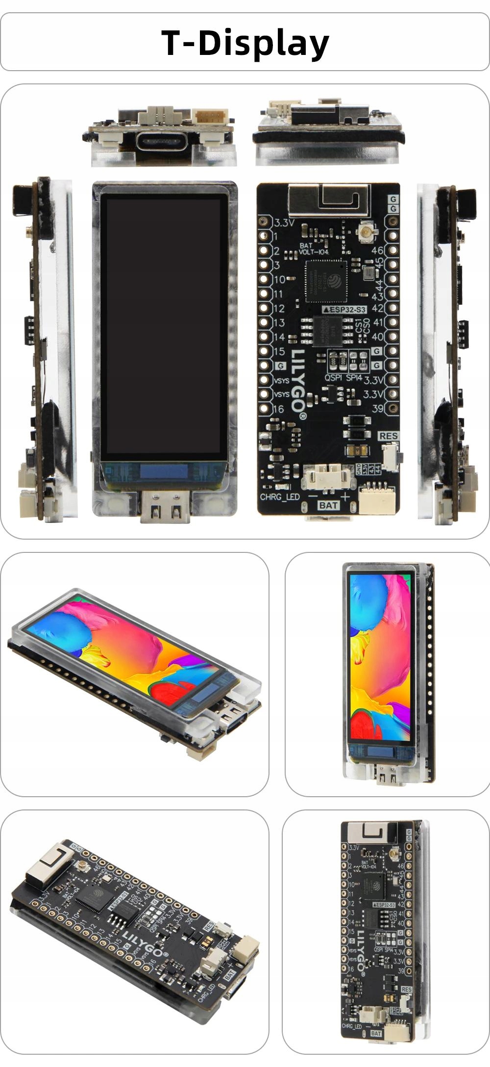 t-display-s3 amoled вступ: t-display-s3 amoled-це вдосконалена пластина розробки t-display-s3, що містить першу комбінацію ESP32-S3+AMOLED. Він покращився від РК -дисплея до дисплея AMOLED, забезпечуючи кращий колір кольору. Крім того, він покращився від інтерфейсу SPI до QSPI для збільшення швидкості та від антени -дошки до 3D -антени для поліпшення використання Wi -Fi та Bluetooth. T-DISPLAY-S3 AMOLED MCU ESP32-S3R8 ДВОРНИЙ МІНКОР МІКРОПРОГОРАЦІЙНИЙ МІКРОПРОГАССОР МІКРОПроцесорна пам'ять 16 Мб PSRAM 8 MB бездротового підключення 2,4 ГГц Wi-Fi 802.11 Bluetooth 5.0 (LE) Платформа програмування Arduinoid 1,91 дюйма RM67162 IPS AMOLED RM67162 Дискатна система Активна область 19,8 x 44,22 мм Роздільна здатність 240 (ширина) X RGB X 536 (висота) інтерфейс QSPI IPS кут IPS Повна версія Основна версія версії. Більша переносимість, бічна збірка кнопки завантаження та скидання, дотик версії з центральною кнопкою. ⚠ Продуктивність нової та старої версії однакова. Виберіть версію, яка найкраще відповідає вашому проекту. Пакет містить: