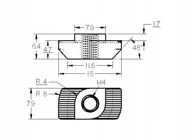 Т-образна гайка 8 M4 FB Т-образна гайка 8 мм M4
