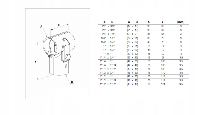 Т-образний затискач A 4,0" x B 2,0" використовується для кріплення труб у шпильках, огорожах, перегородках, опорних трубах, трубах у циркулярах у стайнях, коморах та на відкритому повітрі.