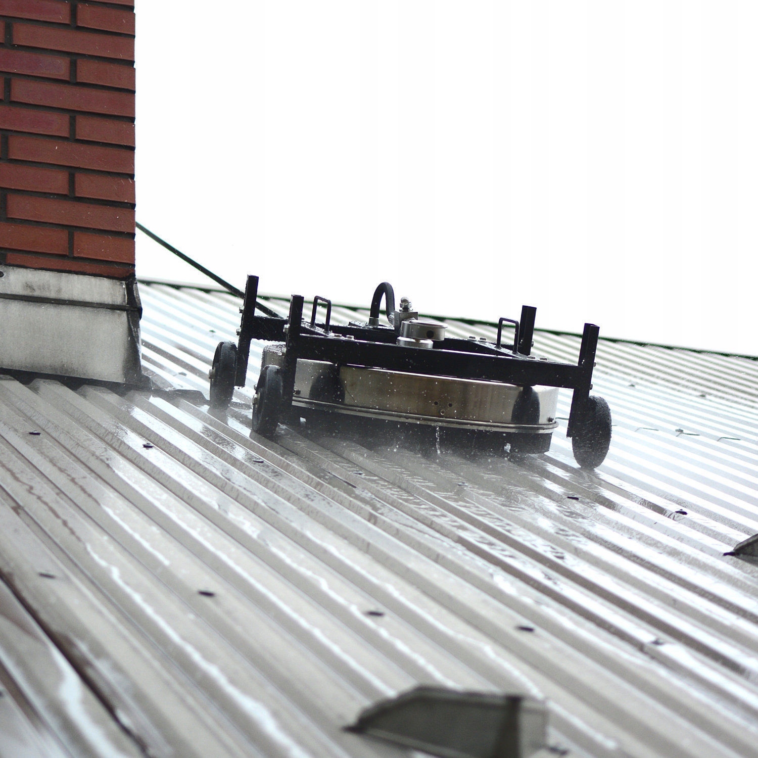 Професійна щітка для чищення покрівлі, призначена для миючих пристроїв високого тиску з витратою води від 600-1800 л/год. Представлена щітка оснащена двома мийними форсунками високого тиску з широким кутом струменя, розміщеними на обертовому кронштейні (з підшипниками), що забезпечує плавну та стабільну роботу. Завдяки своєму розміру, ефективності очищення та якості виготовлення t-racer може підвищити ефективність поверхні пральної машини до 500% порівняно з меншими щітками або турбонасадками.