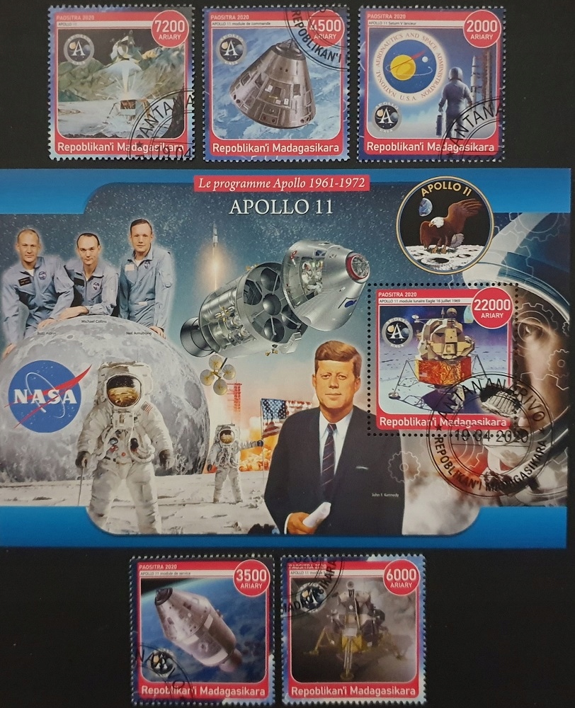 T.0393 *СЕРІЯ + БЛОК* АМЕРИКАНСЬКА ПРОГРАМА ЗАВОЮВАННЯ КОСМІЧНИЙ АПОЛЛОН 11