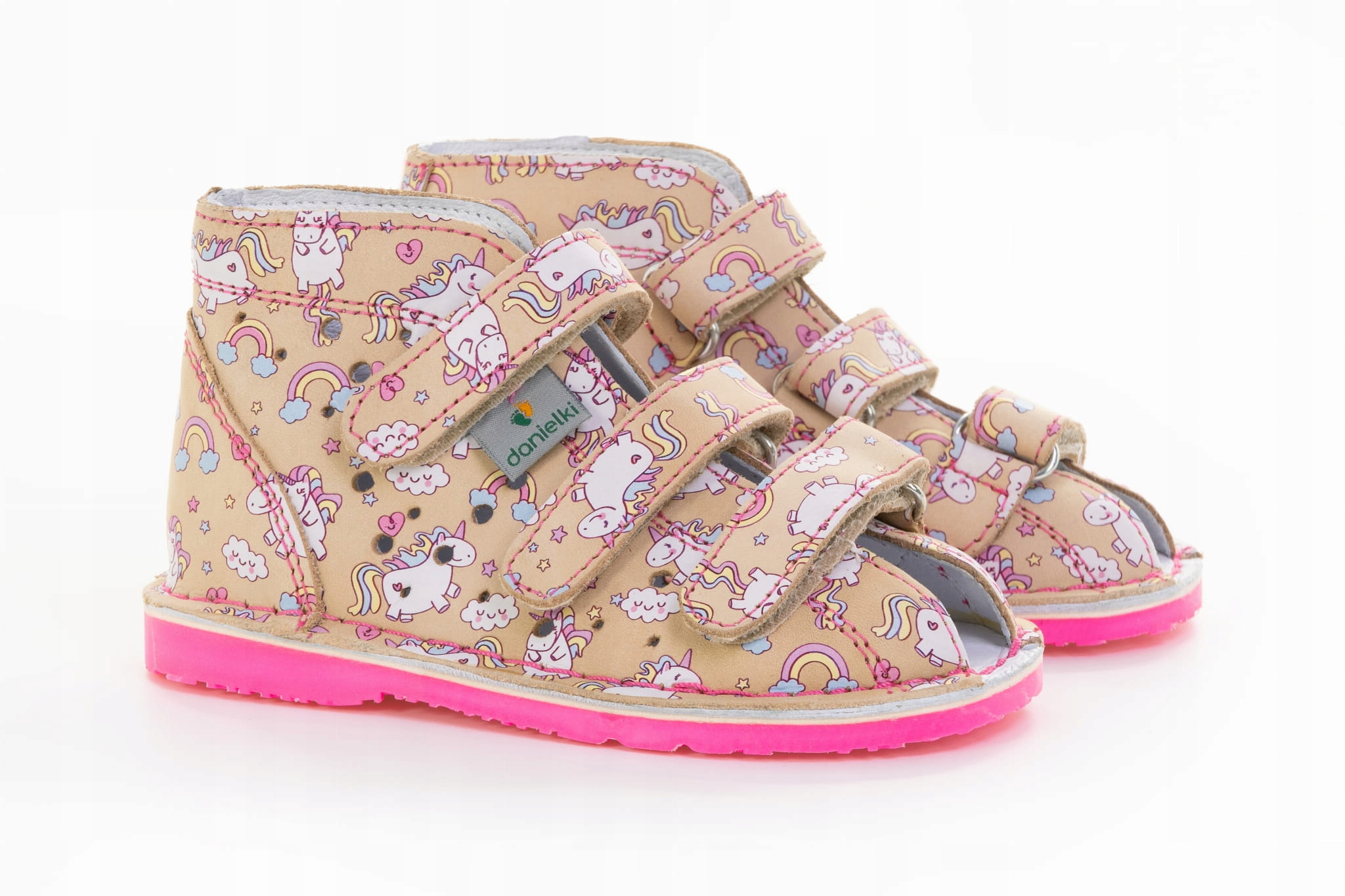 Danielki T125L fairy tale ff - ідеальні профілактичні тапочки для дітей, які підтримують правильний розвиток стопи та забезпечують комфорт щодня. Виготовлені з натуральної шкіри, вони легкі, гнучкі та міцні - створені, щоб супроводжувати вашу дитину з перших кроків.