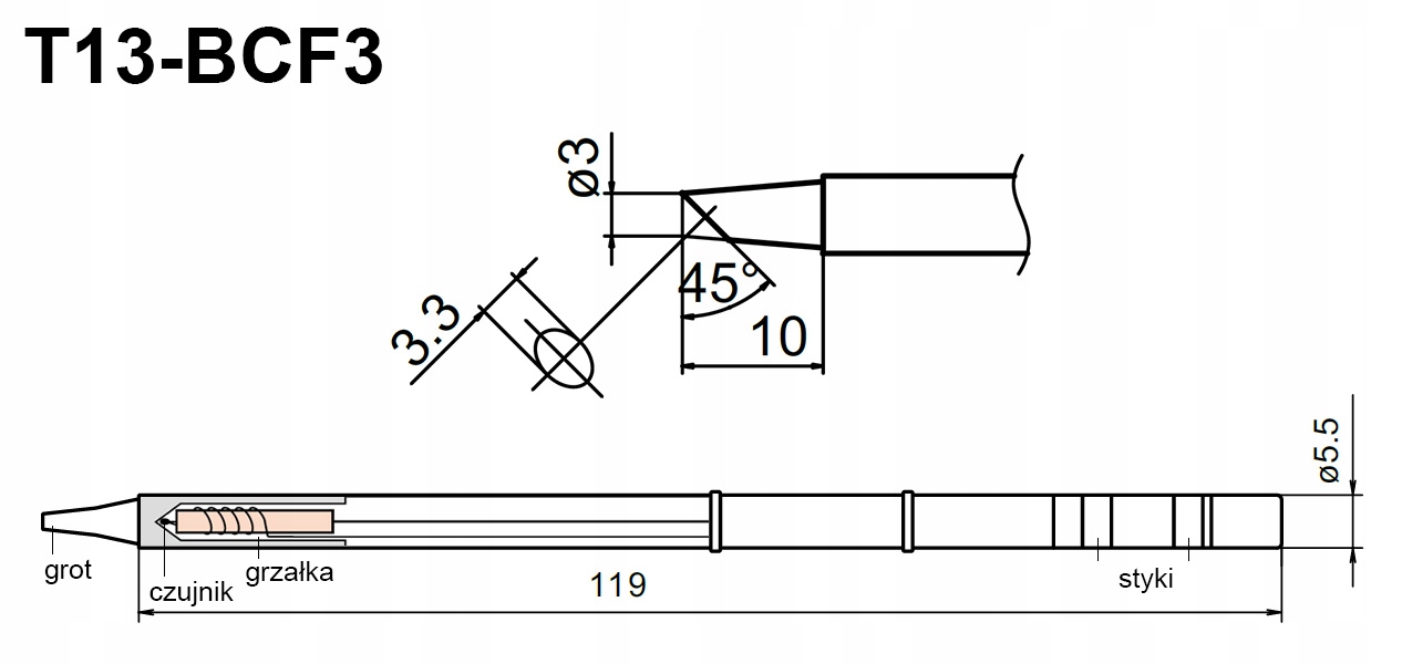 T13-BCF3 ГРОТ ДЛЯ БАКОН 950D ПАЯЛЬНИК LF007 КОЛОНА