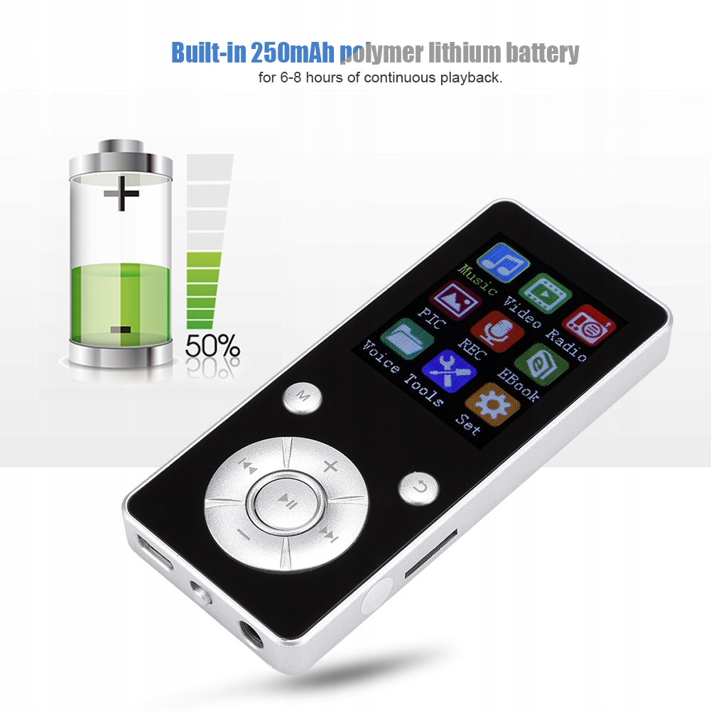 5. Вбудований літій акумулятор з полімером 250 мАг протягом 6-8 годин безперервного відтворення.