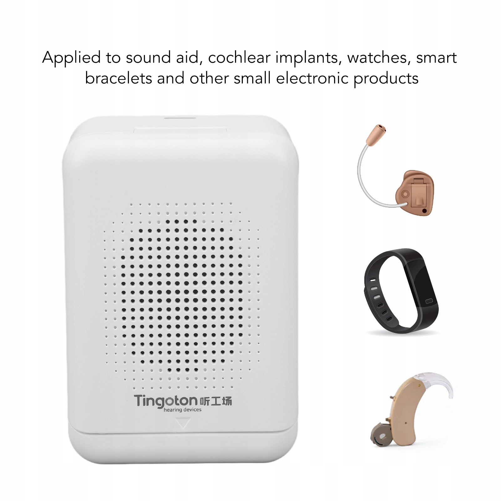 5. Застосування широкого: Звукова допомога може використовуватися для звукової допомоги, імплантатів равликів, годинників, інтелектуальних браслетів та інших невеликих електронних продуктів.