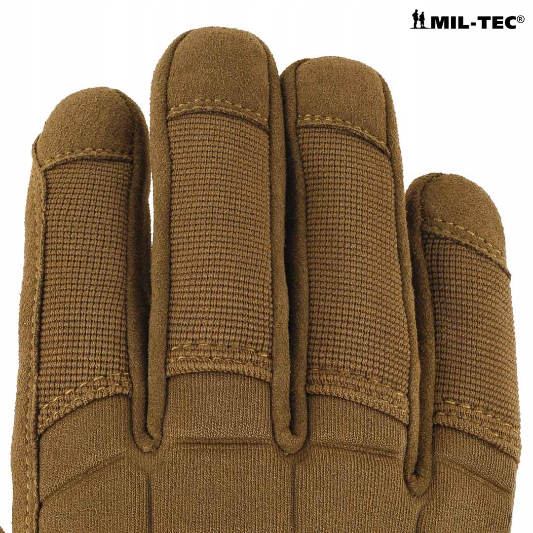 Нападні рукавички тактичні рукавички. Сучасна модель легких рукавичок без жорстких захисних панелей, метакарпальні куби захищені м'яким і гнучким неопреном. Рукавички добре дихають і не обмежують рух рук. Підтримуючи багато зручності, вони захищають руку від потертостей, порізів та опіків та забезпечують маскування рук. У них є анатомічне армування зчеплення - в місці, яке найбільш сприйнятливе для зносу. Військова специфікація гарантує надійність та практичність. Продукт німецької компанії MIL-TEC.