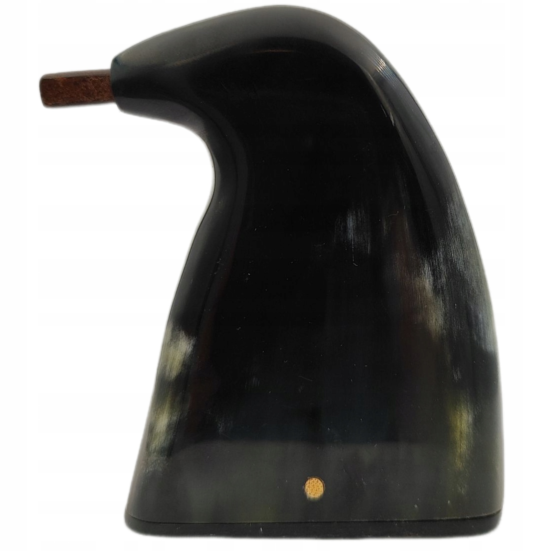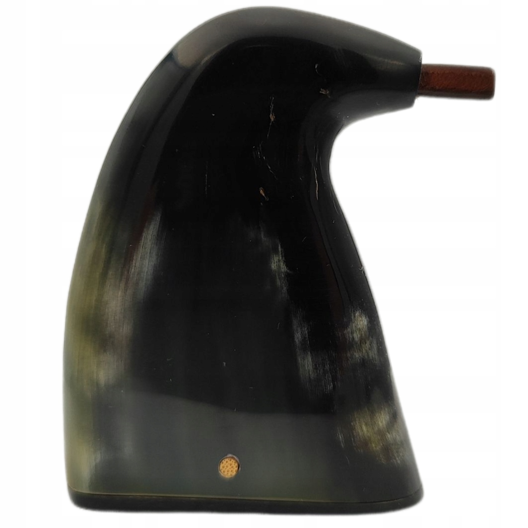 Дно табакерки також зроблено з рогу.Щоб відкрити його, виштовхніть дерев'яну пробку, розташовану на бік. У верхній частині табакерки є шкіряний ковпак.