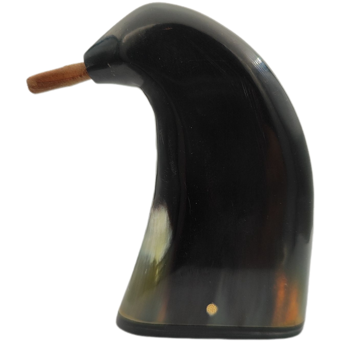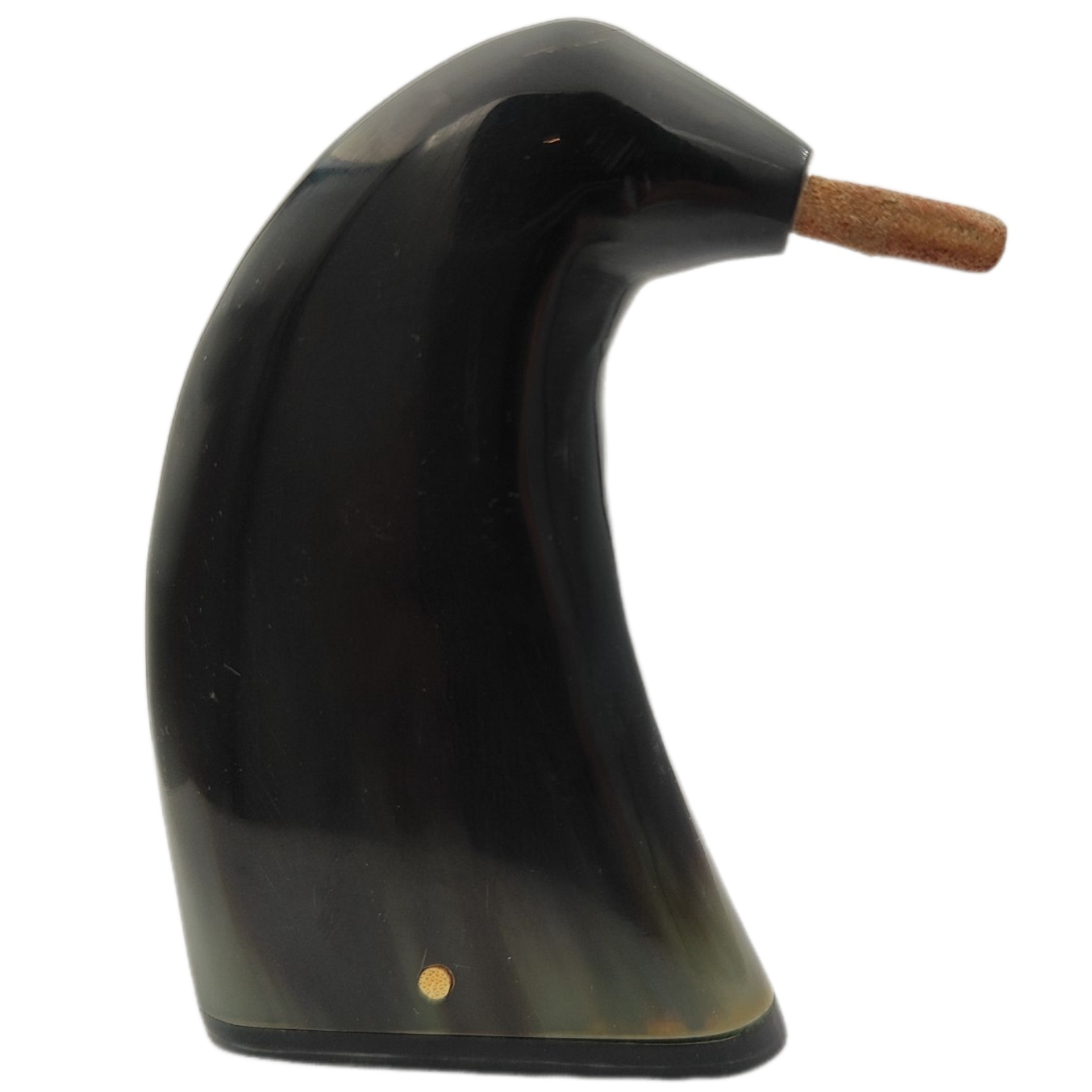 Дно табакерки також було зроблено з рогу, щоб відкрити її, виштовхнути дерев'яну пробку, розташовану на бік. У верхній частині табакерки є шкіряний ковпак.