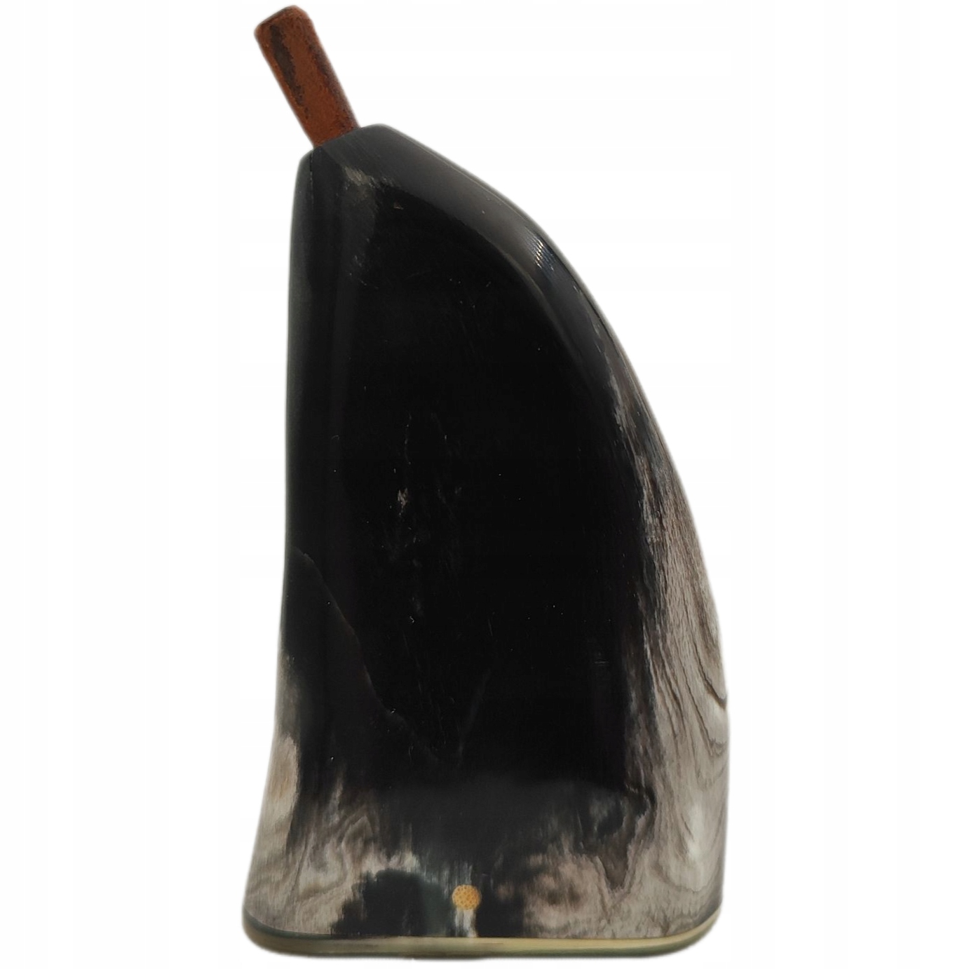 Дно табакерки також зроблено з рогу, виштовхніть дерев'яну пробку, розташовану на бік. У верхній частині табакерки є шкіряна пробка.