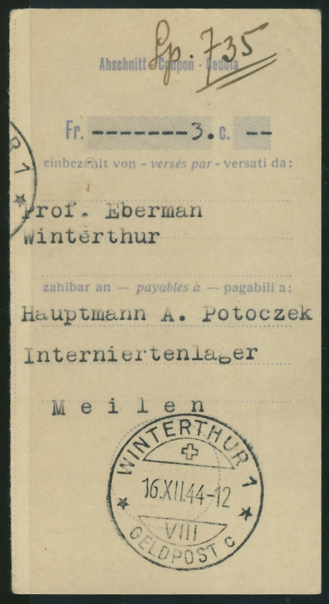 Табір для інтернованих у Швейцарії - 1944 Вінтерхур / Гельдпост