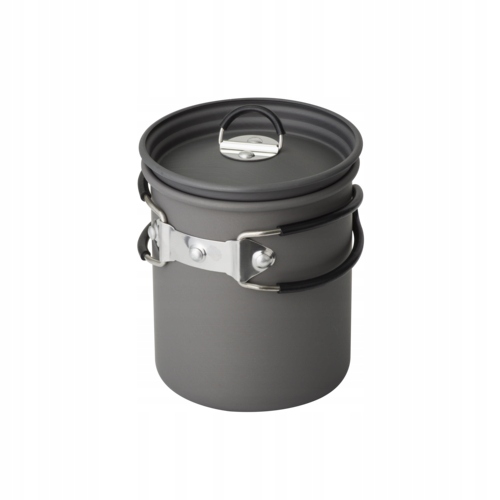Велика кухоль табору, виготовлена з жорсткого анодованого алюмінію. Його можна використовувати на газових пальниках і на багатті. Чашка має кришку, складні ручки та достатній діаметр, щоб встановити літрову пляшку Nalgene.
