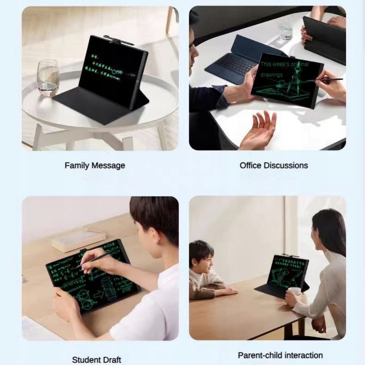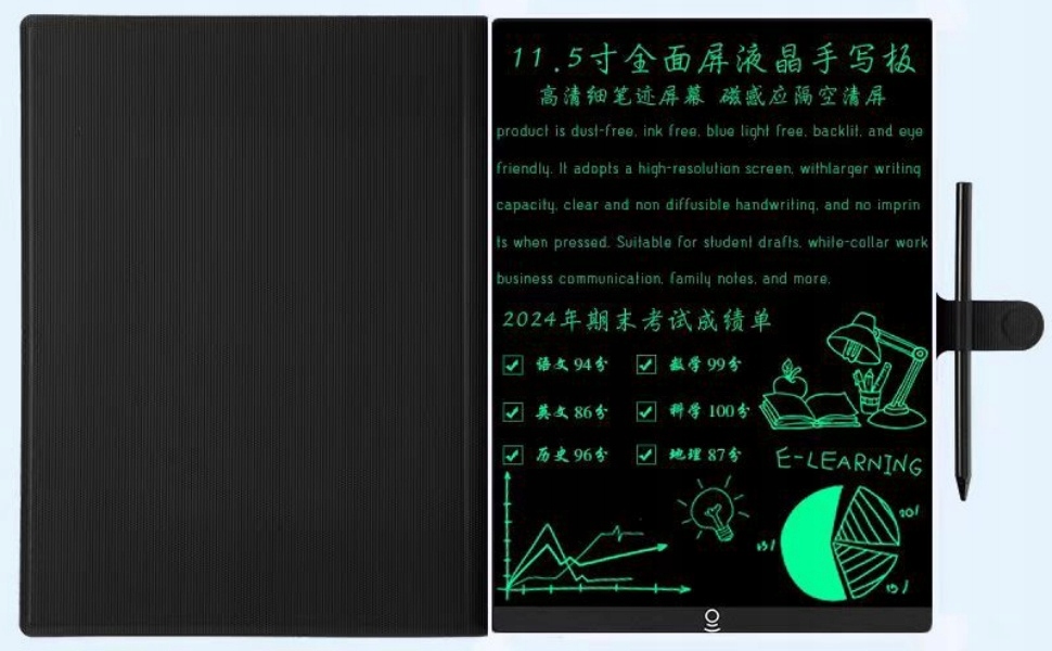 - Письмовий РК-планшет найвищої якості: ультравузький мікрокраї 1,2 мм, ультратонкий товщиною 3,2 мм. Має отвір для ручки, щоб ручка не загубилася. Не боїться плям від води на поверхні екрану. Не боїться падіння завдяки захисному футляру. Жодного застосування чи туші, жодного синього світла чи підсвічування, жодної шкоди для очей. 365 днів автономної роботи. Екран із тонким рукописним текстом високої чіткості.