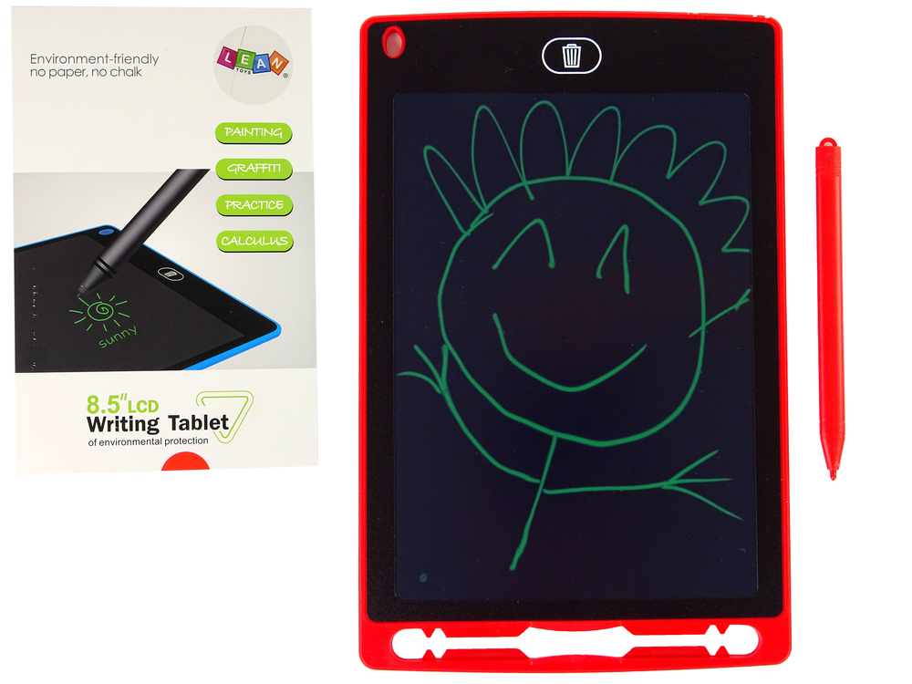 Поверхня планшета має чутливу поверхню, що дозволяє малювати лінії різної товщини за допомогою доданого стилуса, який розташований у верхній частині планшета. Унизу є зручна кнопка для видалення одним натисканням. Малюйте, нотуйте та малюйте! Приємна розвага гарантована.