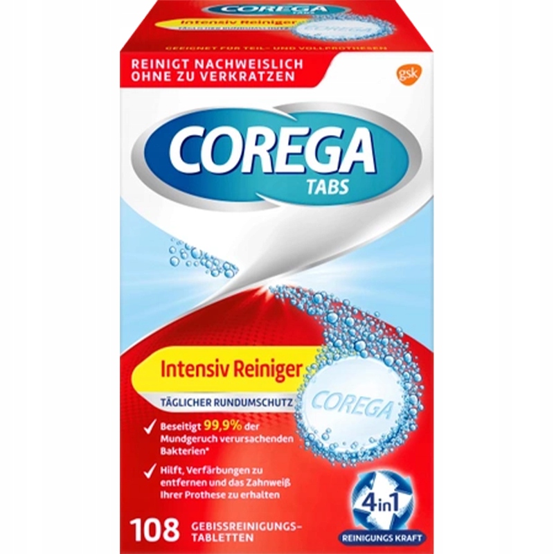 Очищувальні таблетки Corega Tabs є ефективним засобом для щоденної гігієни зубних протезів. Завдяки унікальній формулі вони діють всього за 3 хвилини, усуваючи 99,9% бактерій, відповідальних за неприємний запах з рота. Регулярне використання допомагає підтримувати зубний протез чистим і забезпечує комфорт під час носіння.