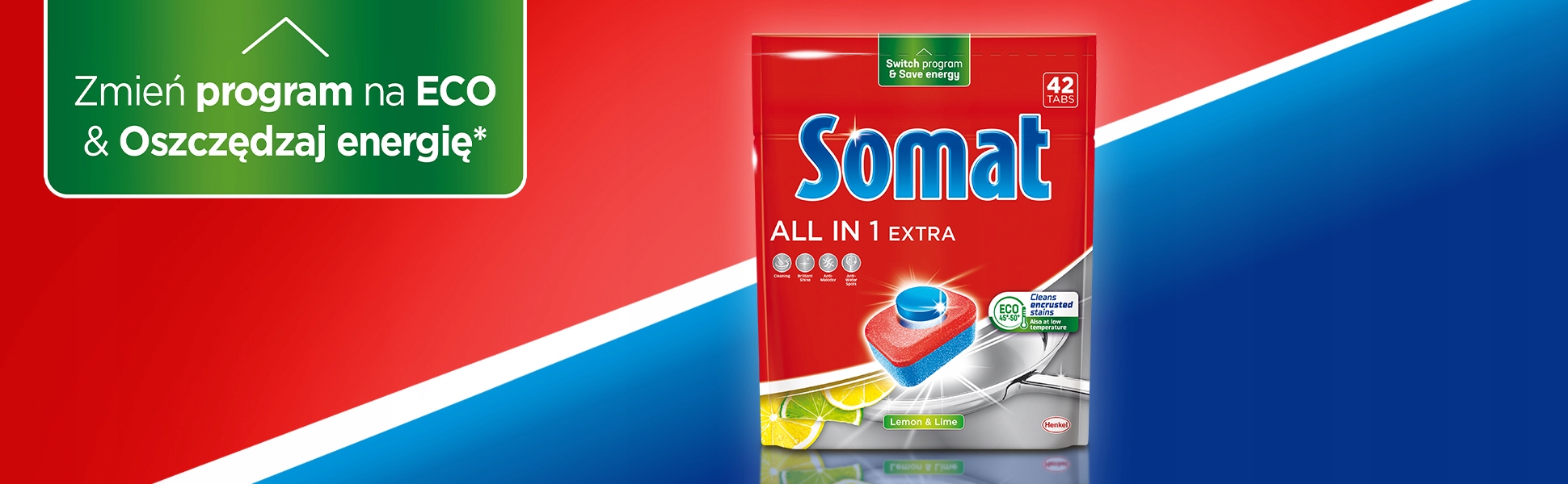 Somat All in 1 Extra надасть вашим тарілкам, столовим приборам і склянкам сліпучого блиску без розводів.