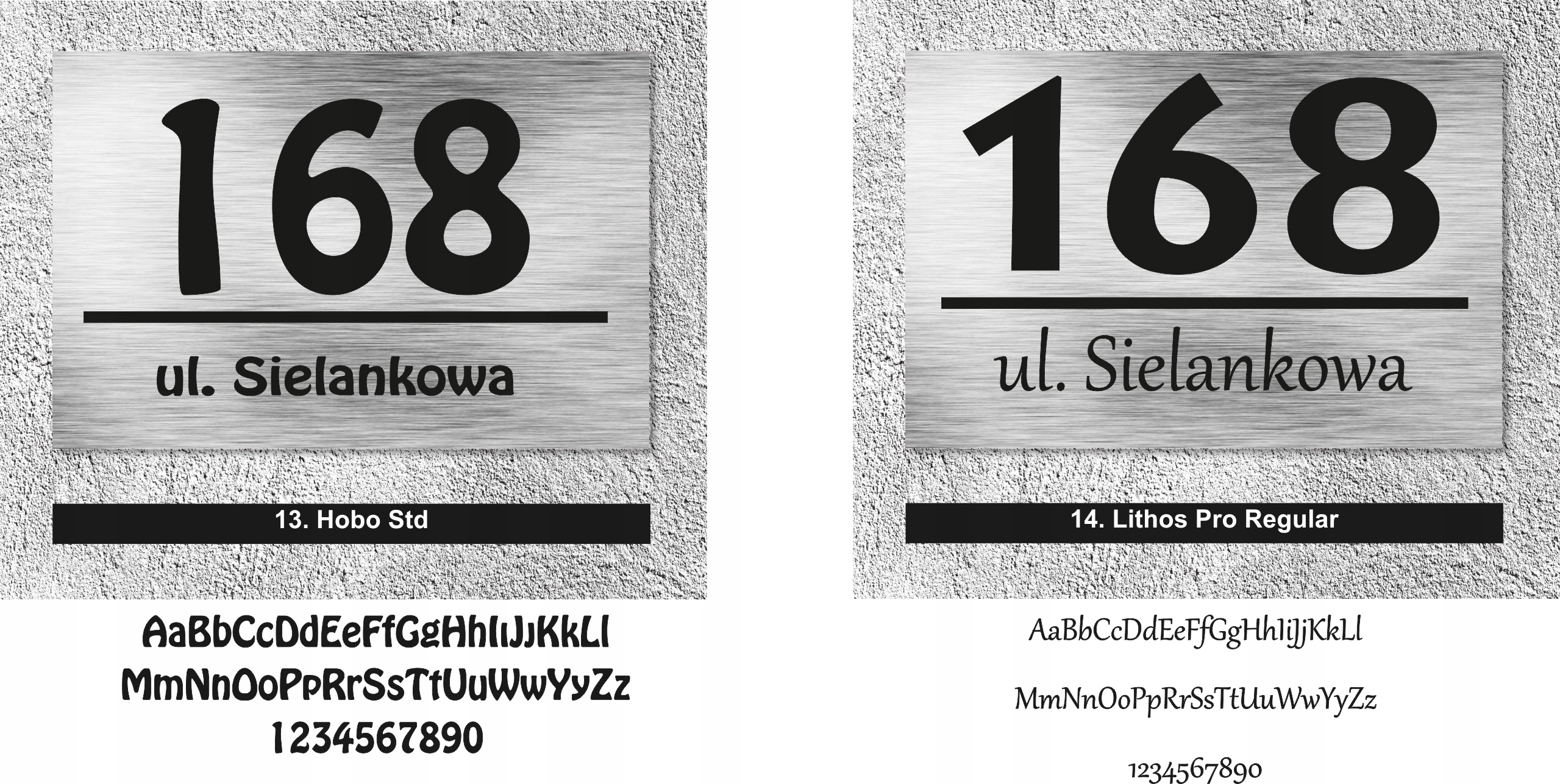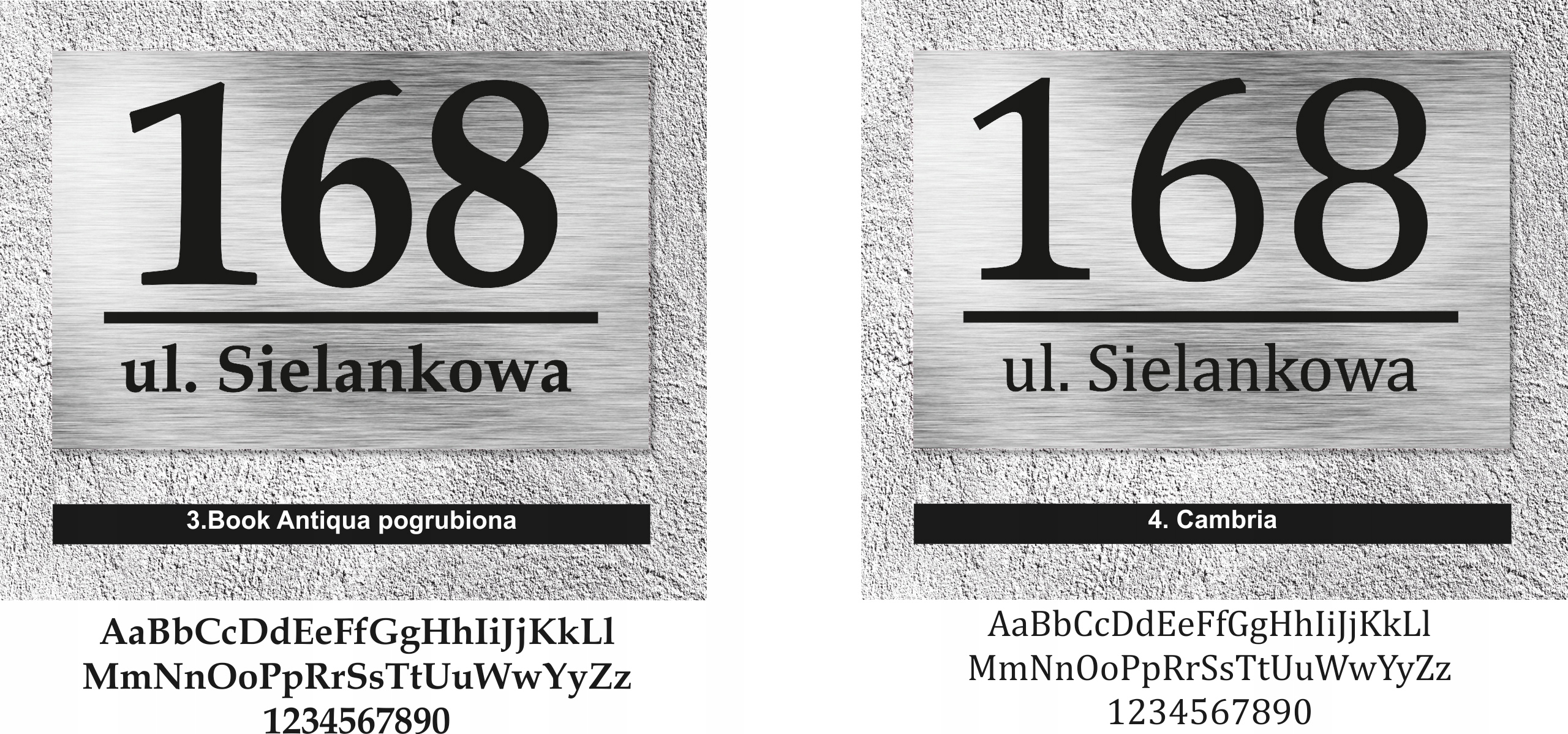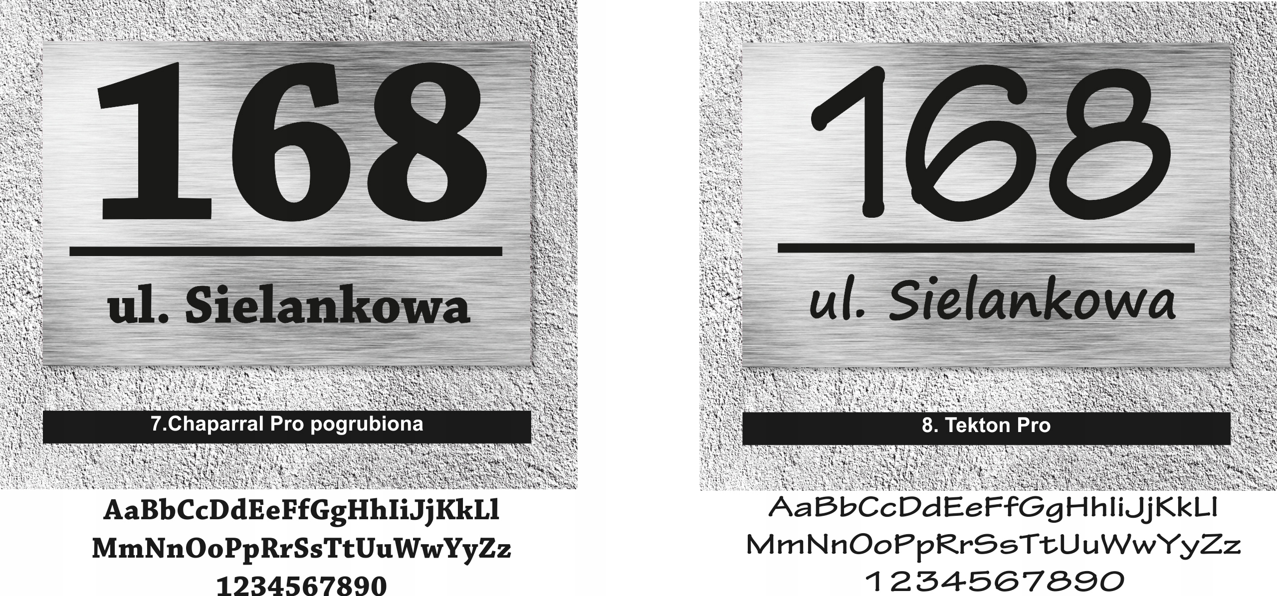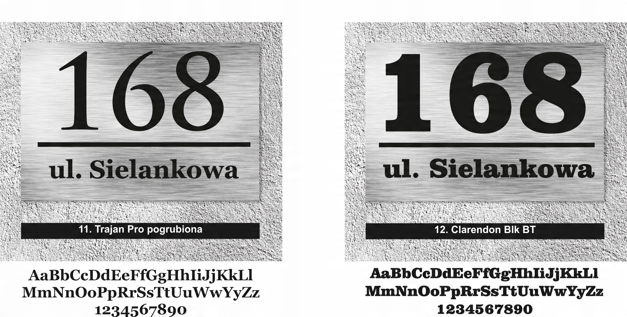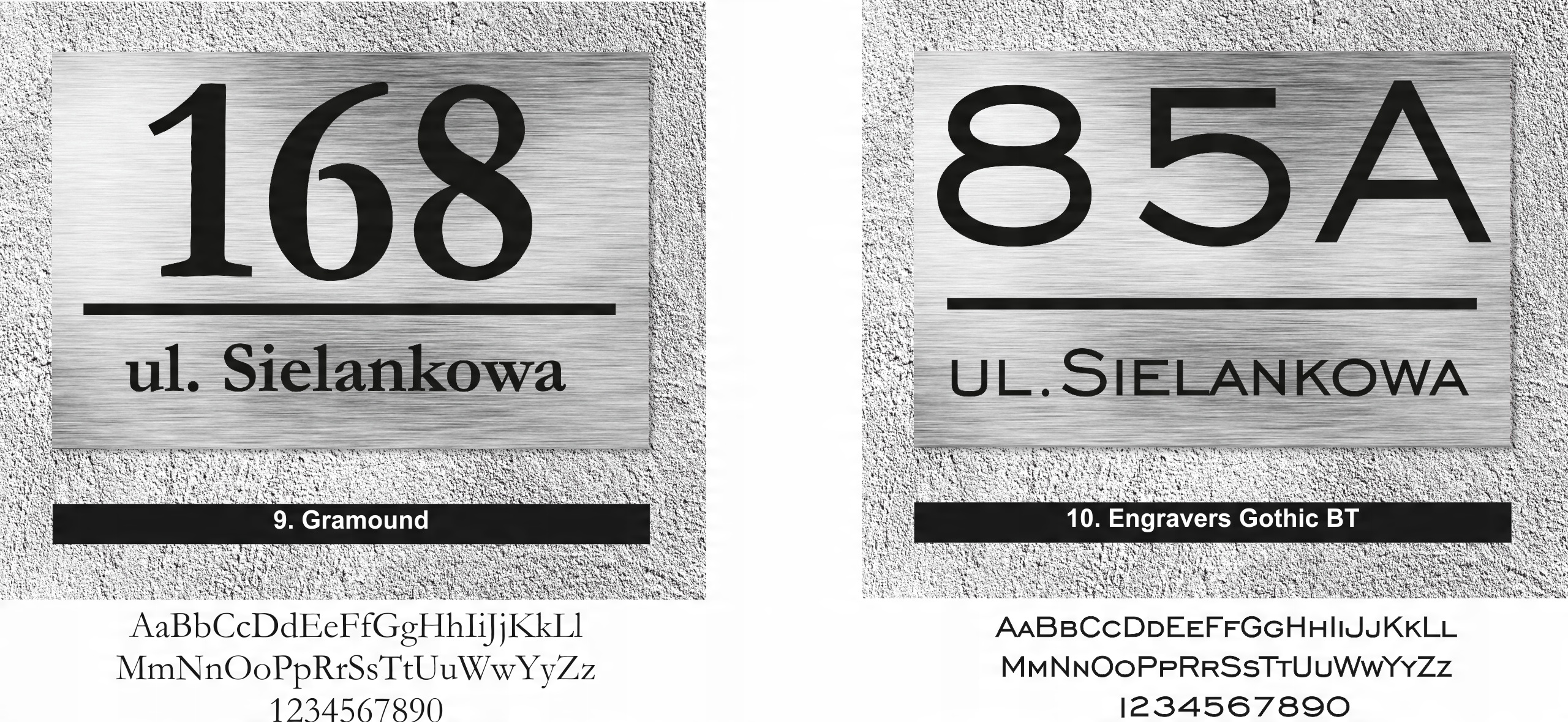 Нижче наведено шрифти, з яких ми створимо вашу табличку. Виберіть той, який вам найбільше підходить, і напишіть свій вибір у примітках продавцю під час оформлення замовлення. Не забудьте вказати номер будинку та назву вулиці.