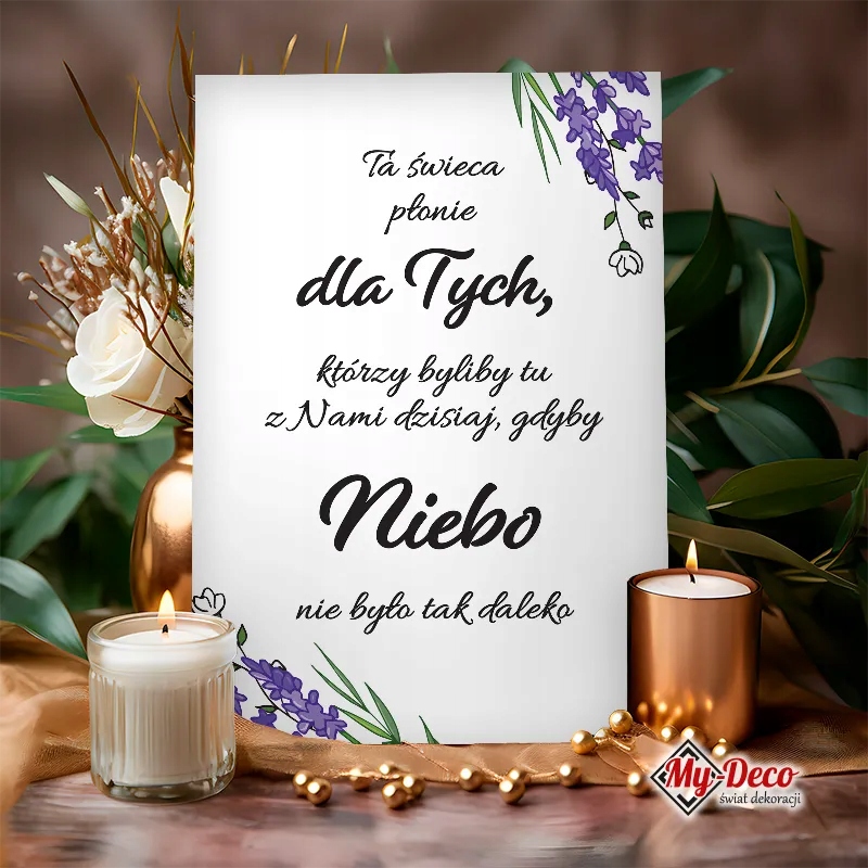 Наша табличка «Ця свічка горить для тих...» — це унікальний аксесуар, який допоможе вам вшанувати пам’ять близьких, які вже пішли з життя, але все ще в твоєму серці. Гарний текст і елегантне оформлення таблички з тонким графічним візерунком стане зворушливим акцентом під час весільної церемонії, фуршету, Святого Причастя, хрещення, дня народження та інших важливих подій.