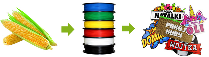 Вивіски виготовлені з екологічного PLA пластику, звичайно з додаванням різних кольорових пігментів. Цікаво, що цей пластик виготовлений із кукурудзи. Завдяки цьому це натуральний, біорозкладаний матеріал, а також нейтральний для здоров’я та навколишнього середовища.