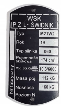 Табличка на рамі мотоцикла WSK 175 M21W2 112 кг тип 060 174 см3