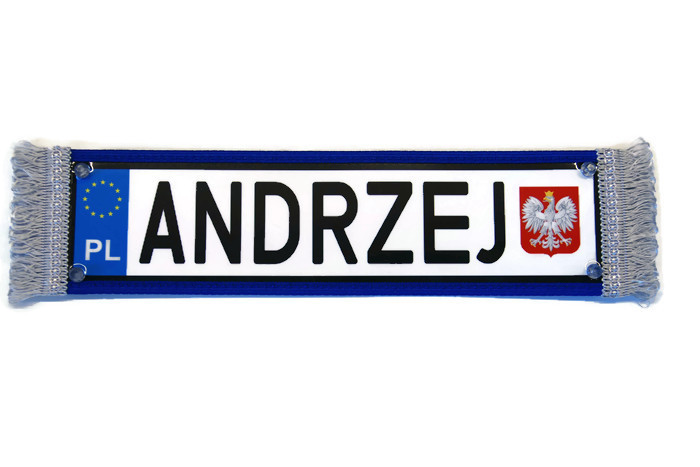 Предмет продажу табличка-вимпел з ім'ям ANDRZEJ. Кріпиться до скла за допомогою чотирьох присосок.