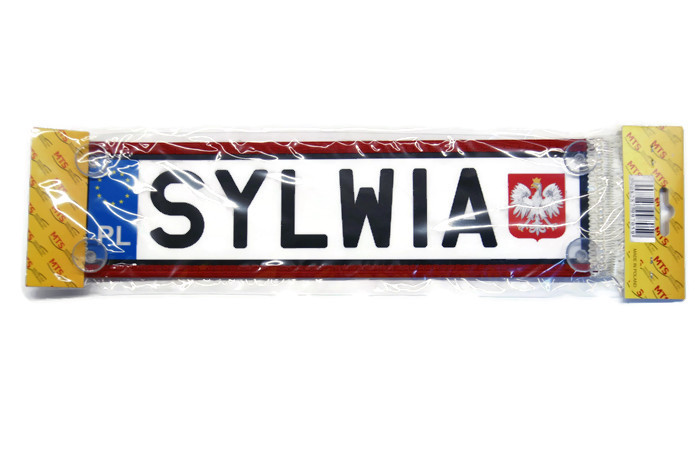 Предмет продажу - вимпел з ім'ям SYLWIA. Кріпиться до скла за допомогою чотирьох присосок.
