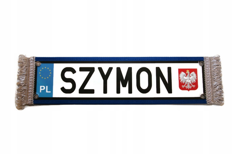 Предмет продажу вимпел з ім'ям SZYMON. Кріпиться до скла за допомогою чотирьох присосок.