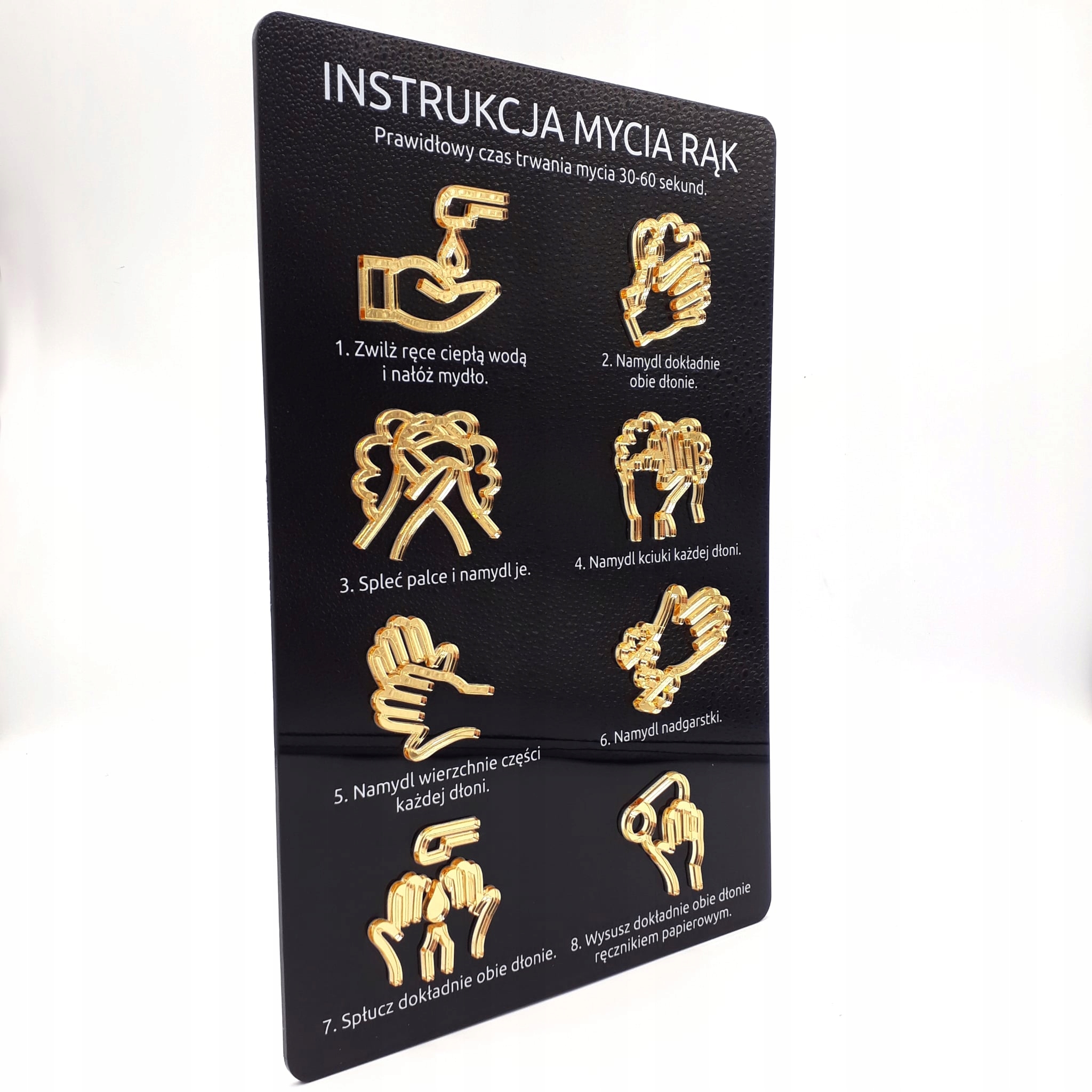 Інструкції з миття рук із дзеркальними піктограмами - елегантна інформаційна дошка 30 × 20 см